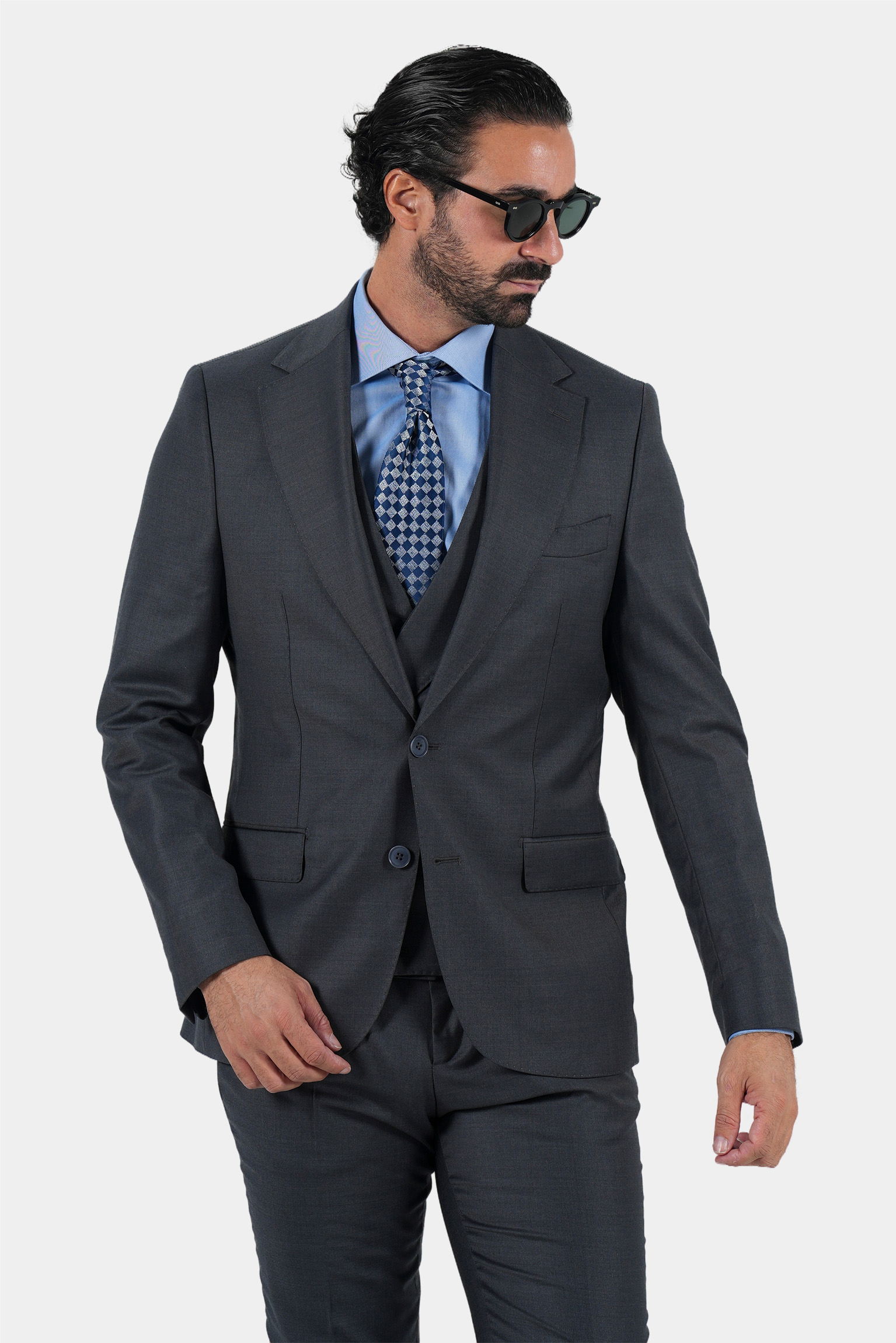 Grauer Dreiteiliger Anzug aus italienischer Wolle Slim Fit