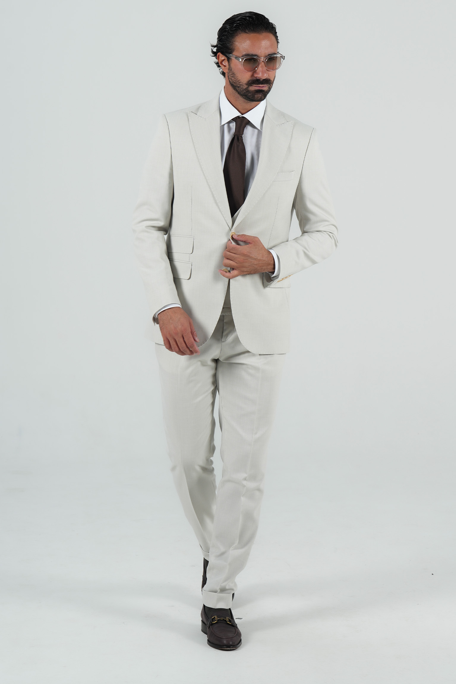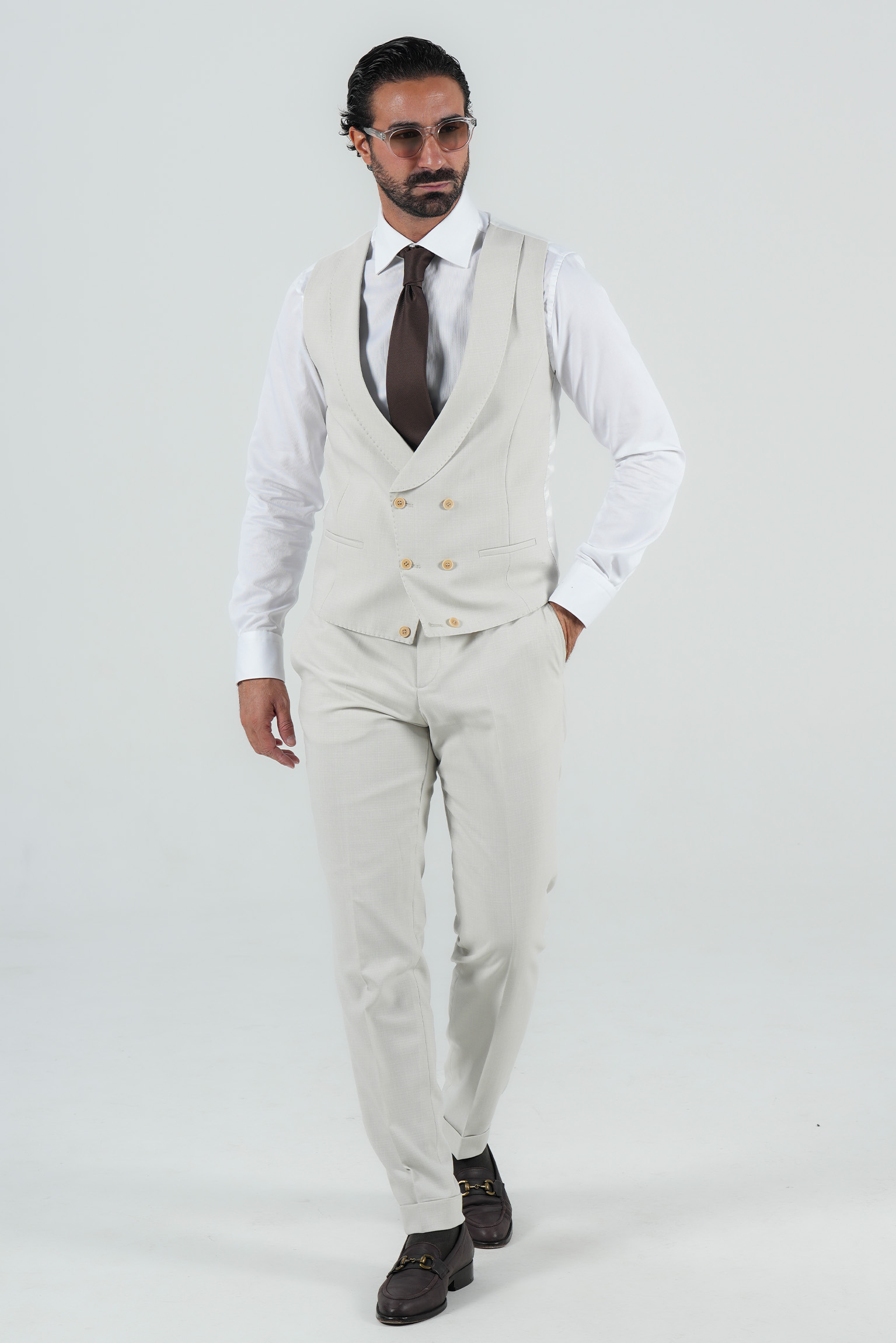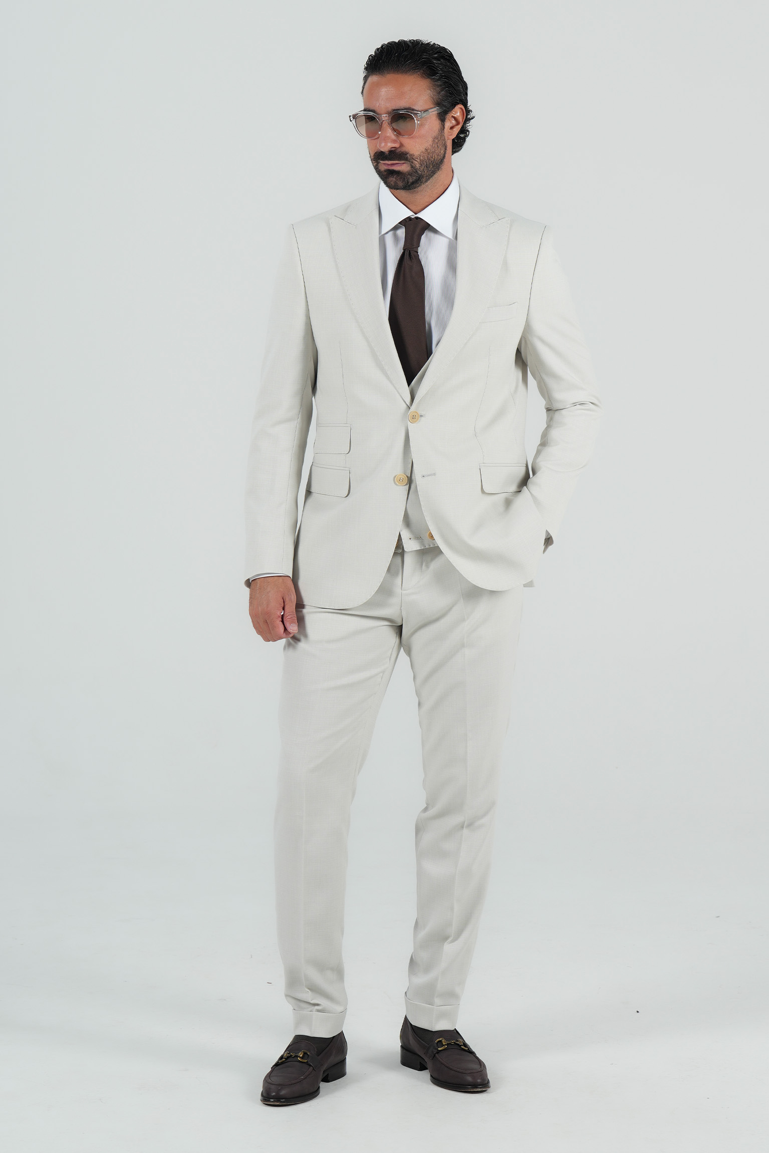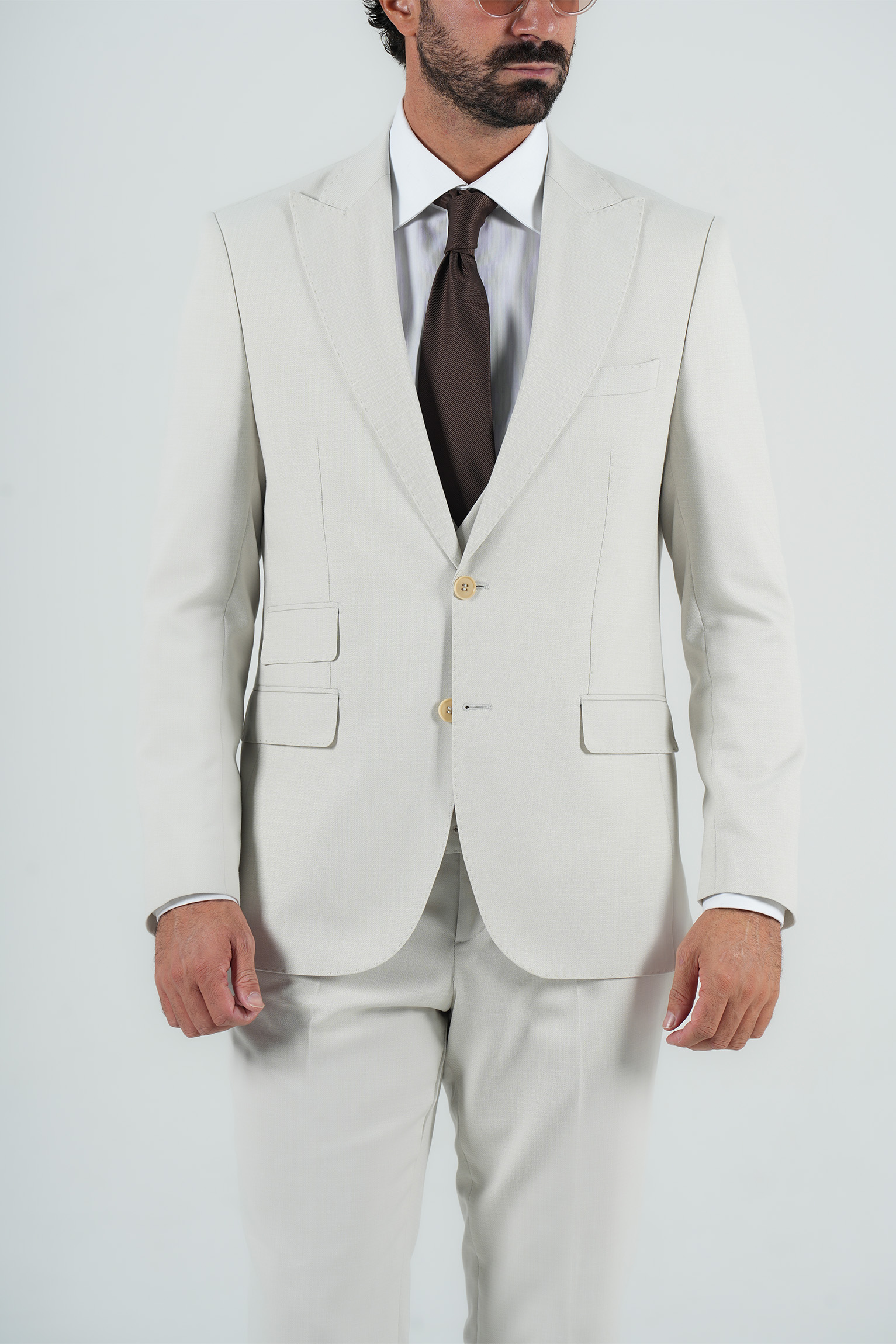 Grauer Dreiteiliger Anzug aus italienischer Wolle Slim Fit