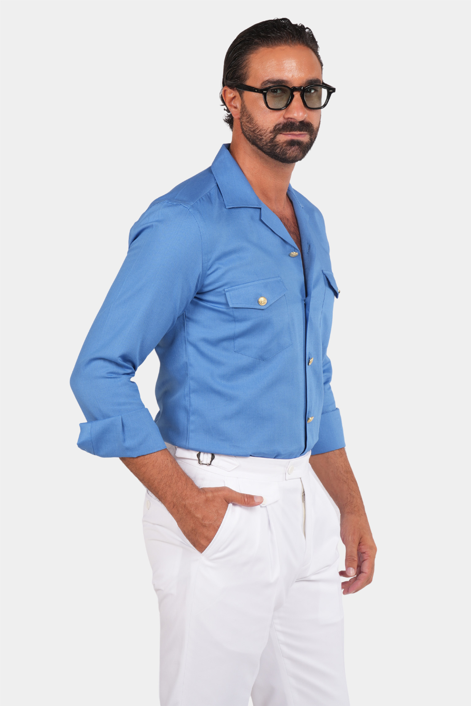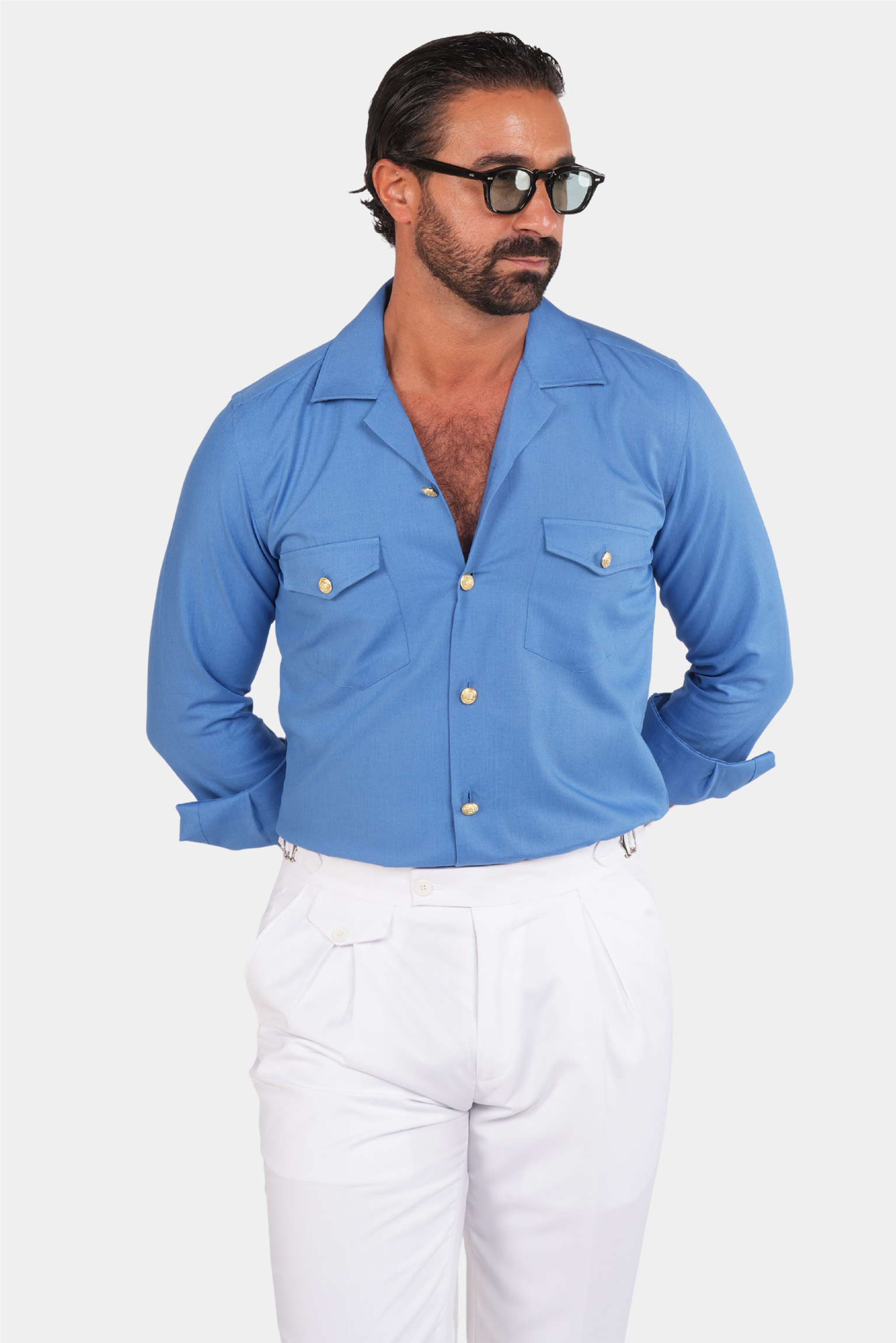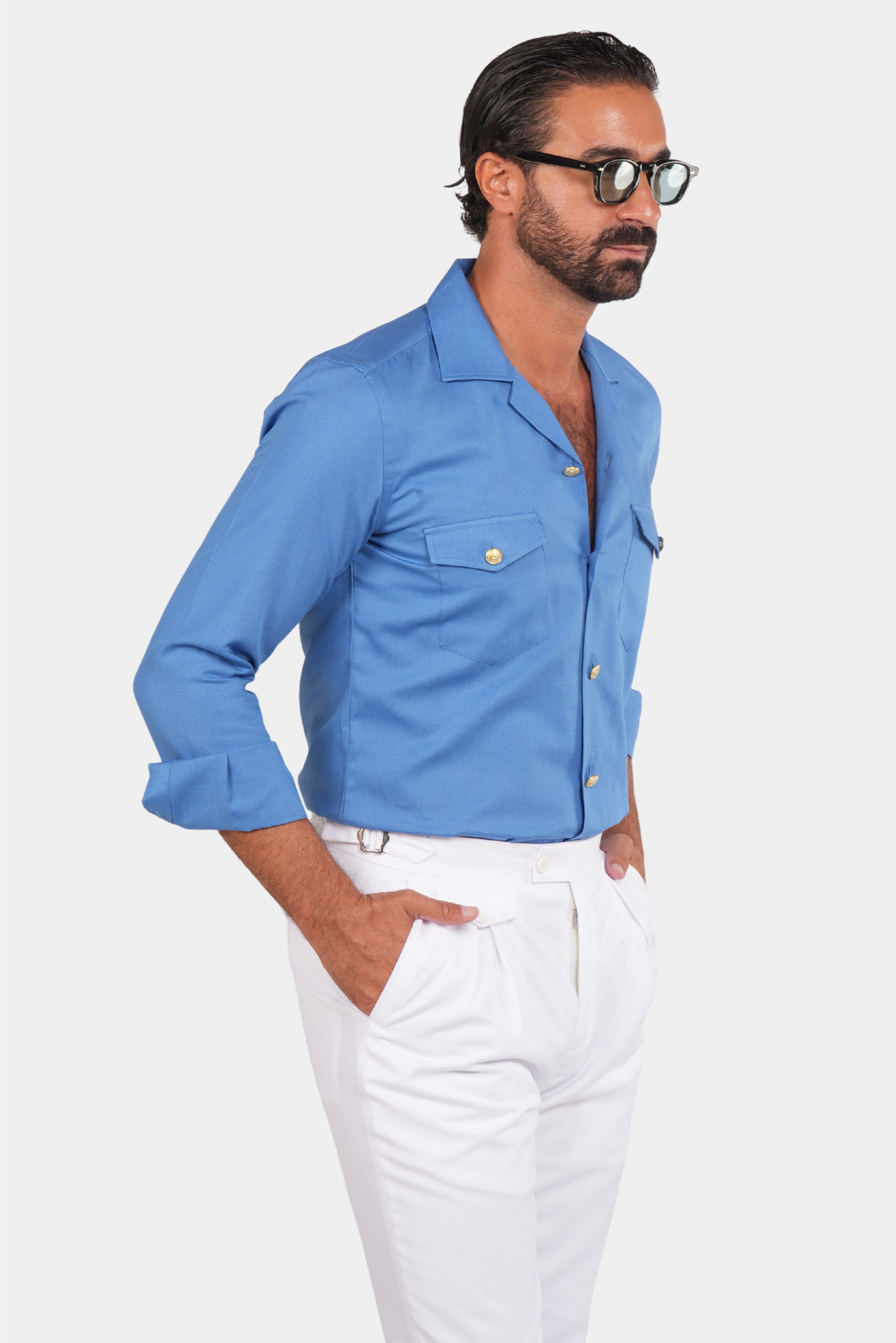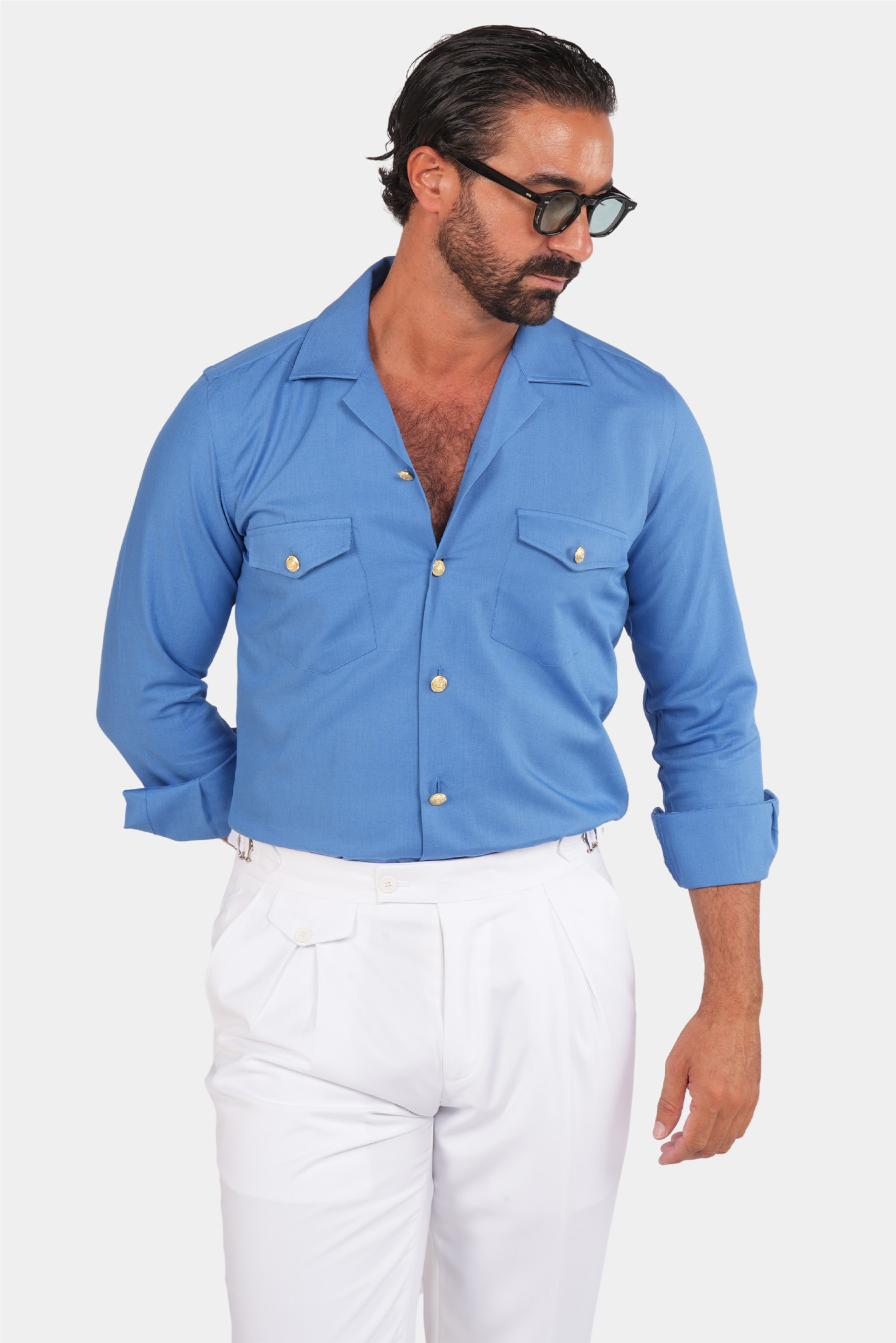 Für alle, die den perfekten Mix aus Stil und Komfort suchen, ist das blaue Safari-Hemd ein echtes Must-have. Italienisches Design verleiht diesem Hemd eine markante und elegante Optik, während der atmungsaktive 100 % Baumwollstoff höchsten Tragekomfort für den ganzen Tag garantiert.