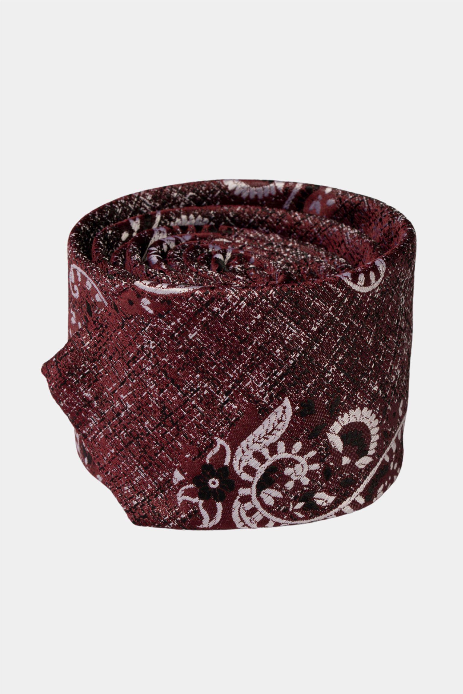 Diese bordorote Paisley-Krawatte verbindet eine reichhaltige Struktur mit zeitlosem Design. Hergestellt in der Tuerkei aus 100 % hochwertiger Mikrofaser, zeigt sie eine tiefe bordorote Basis mit weissen und schwarzen Paisley-Motiven auf einem dezent gewebten, strukturierten Hintergrund. Dadurch entsteht Tiefe und visuelle Charakteristik. Das matte Finish verleiht ihr eine elegante Zurueckhaltung und macht sie zur idealen Wahl für formelle Anlaesse, die ein subtiles Mass an Raffinesse verlangen.