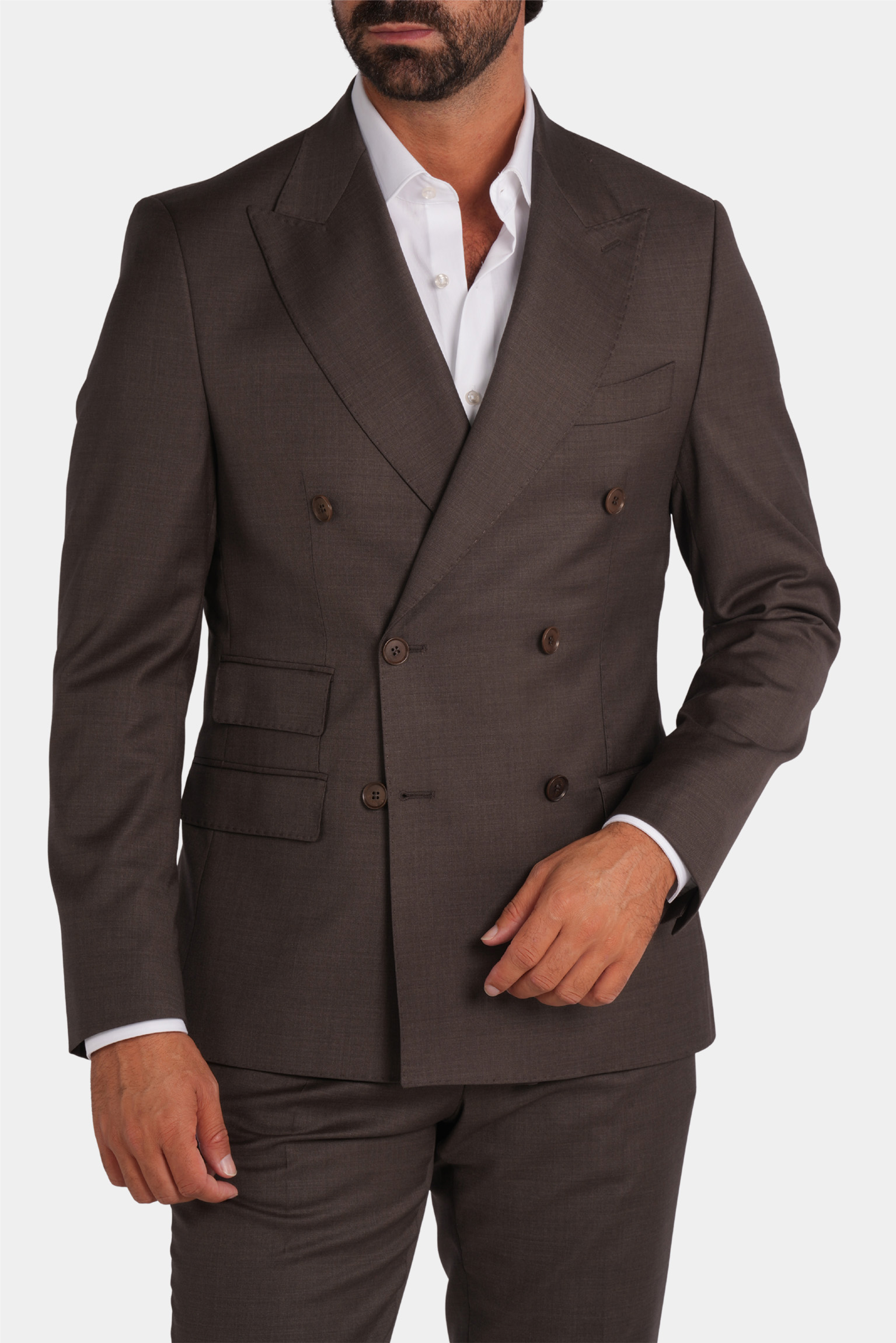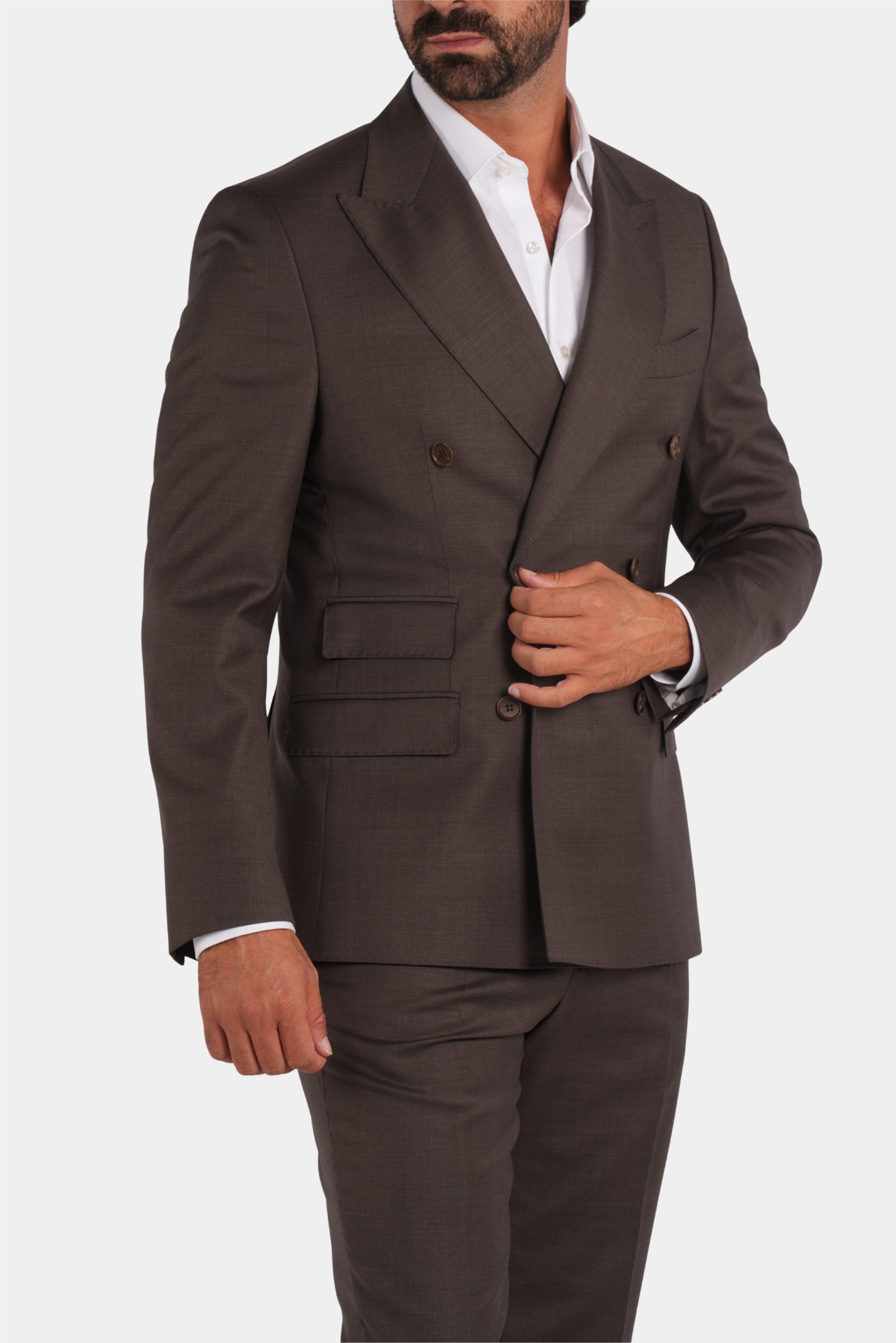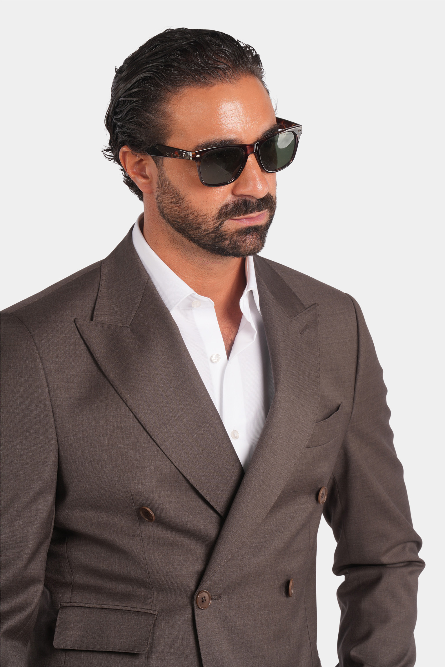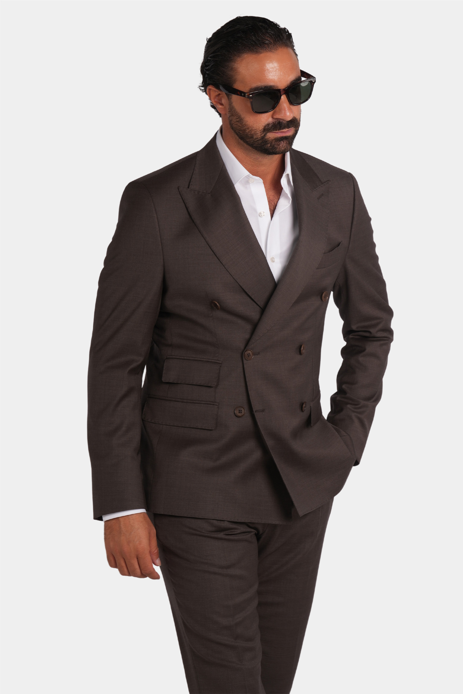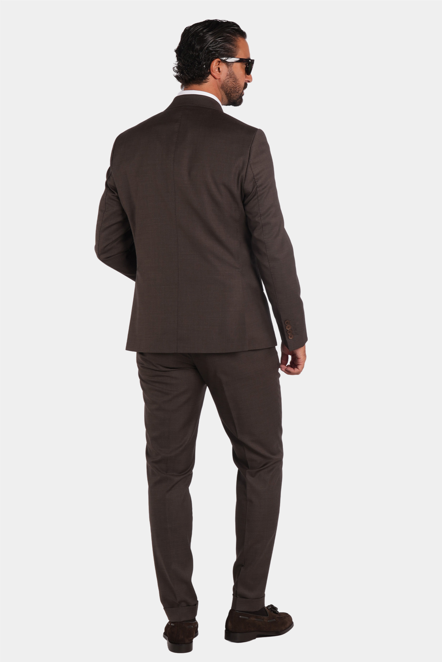 Dieser braune Slim-Fit-Zweireiher vereint italienische Handwerkskunst mit zeitloser Eleganz. Gefertigt aus 100 % Super 120s-Wolle von Vitale Barberis Canonico, bietet er eine glatte, leichte Textur und einen raffinierten Fall. Das steigende Spitzrevers betont die selbstbewusste Silhouette, während die Halb-Canvas-Konstruktion für Struktur, Formstabilität und hohen Tragekomfort sorgt. Vollständig mit Viskose gefüttert, vermittelt der Anzug ein weiches, luxuriöses Innengefühl – ideal für elegante Business-Looks oder formelle Anlässe.