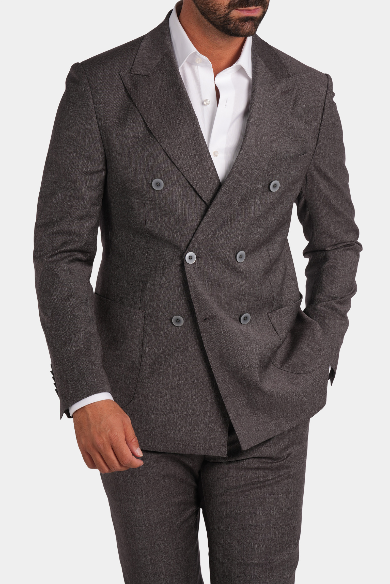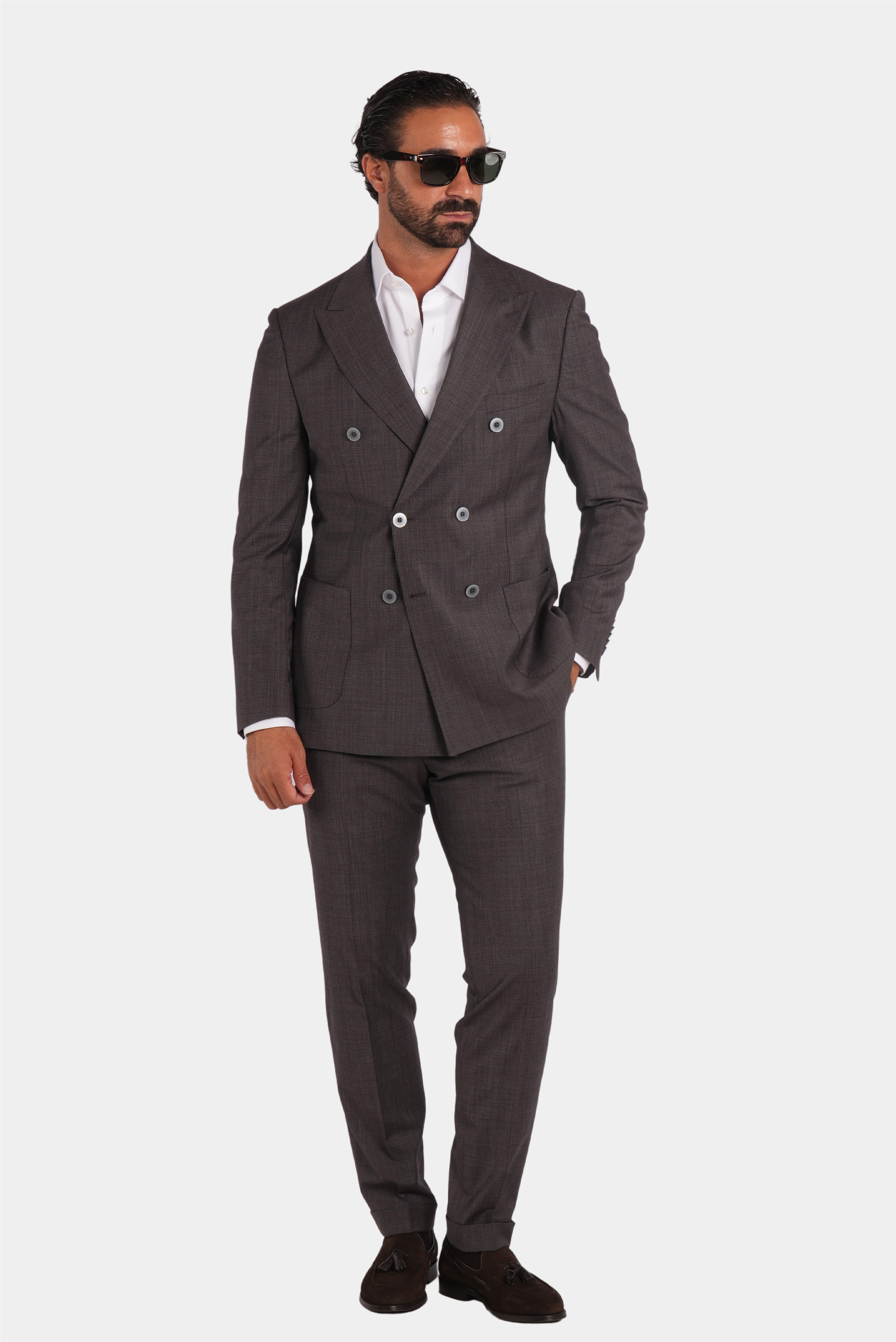 Zeigen Sie Vertrauen und Raffinesse mit diesem markanten braunen zweireihigen Anzug, der perfekt für geschäftliche und formelle Anlässe geeignet ist. Meisterhaft in Italien gefertigt, ist dieser Zweiteiler aus 100% Wolle hergestellt und bietet einen Tailored Fit, der jede Herrengarderobe schärft. Die tiefe braune Farbe sorgt für ein Aussehen von Eleganz und Beständigkeit.