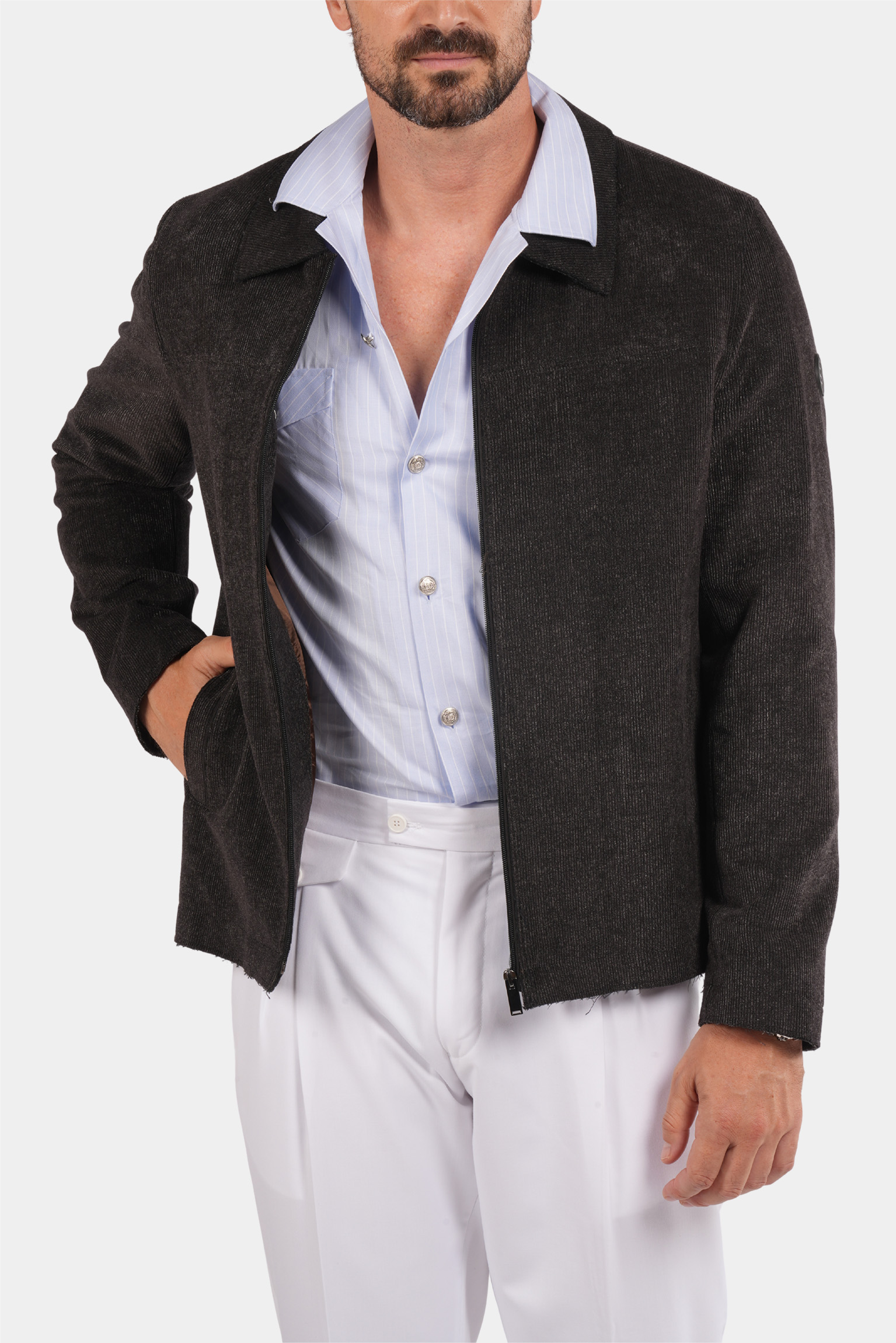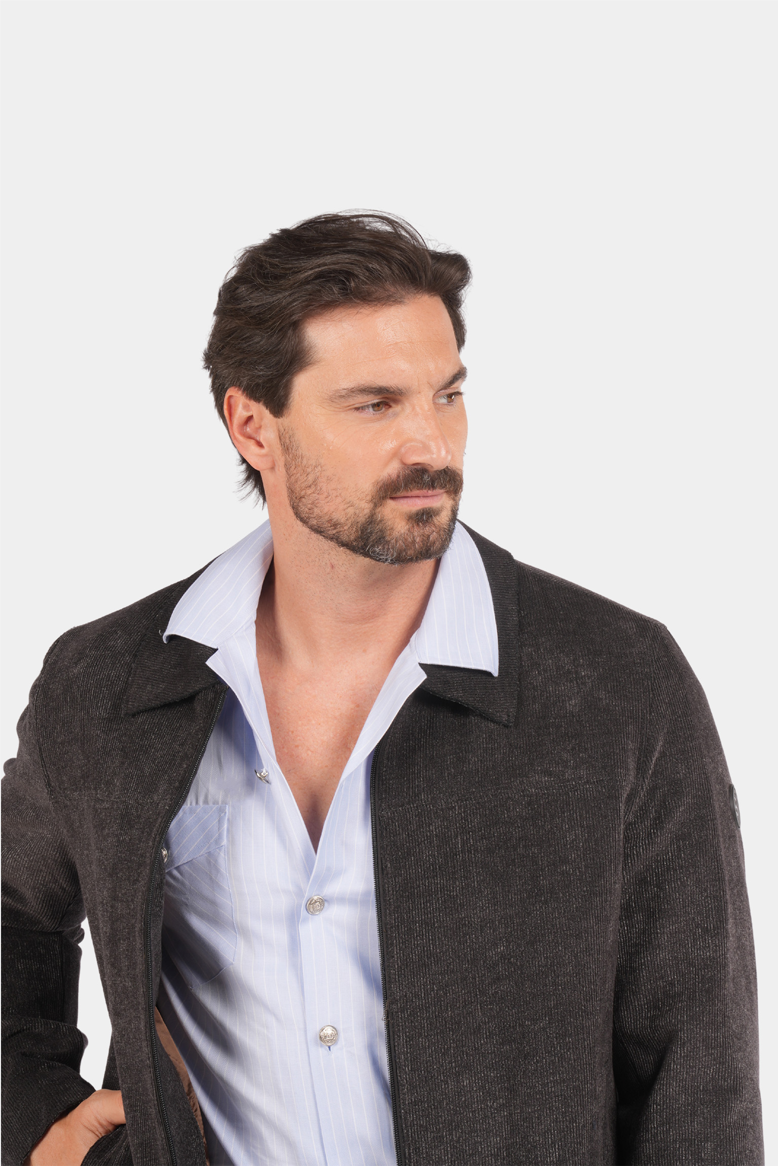 Diese dunkelgraue Jacke ist aus einer hochwertigen Mischung von 75% Baumwolle, 23% Polyester und 2% Elasthan gefertigt und vereint einen stilvollen, modernen Look mit hervorragendem Komfort und Flexibilität. Ihr Design, mit präzisem Schnitt und praktischem Reißverschluss, ist ideal für sowohl formelle als auch informelle Anlässe. Inspiriert vom italienischen Stil, ist diese Jacke eine vielseitige Wahl, die sich mühelos mit verschiedenen Hemden und Hosen kombinieren lässt und Ihrem Look einen stilvollen und makellosen Touch verleiht.
