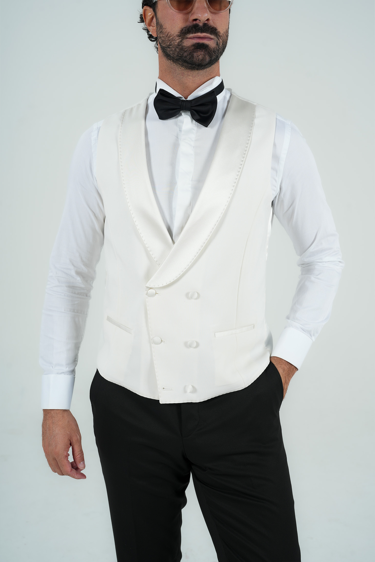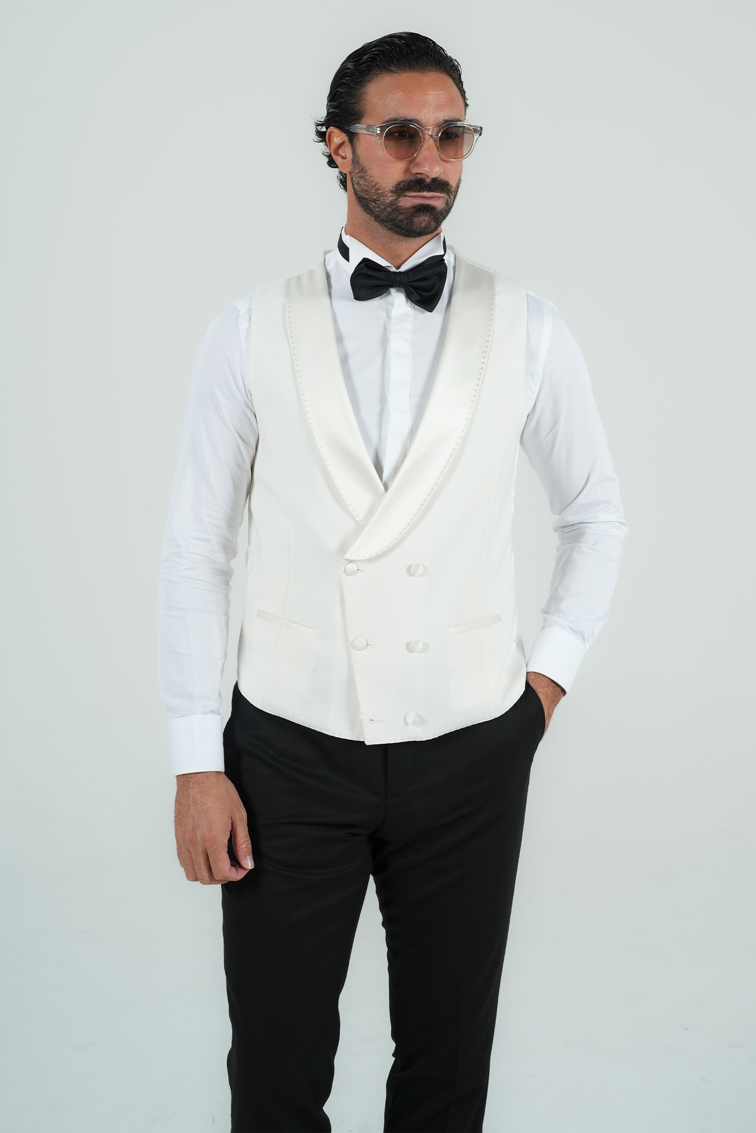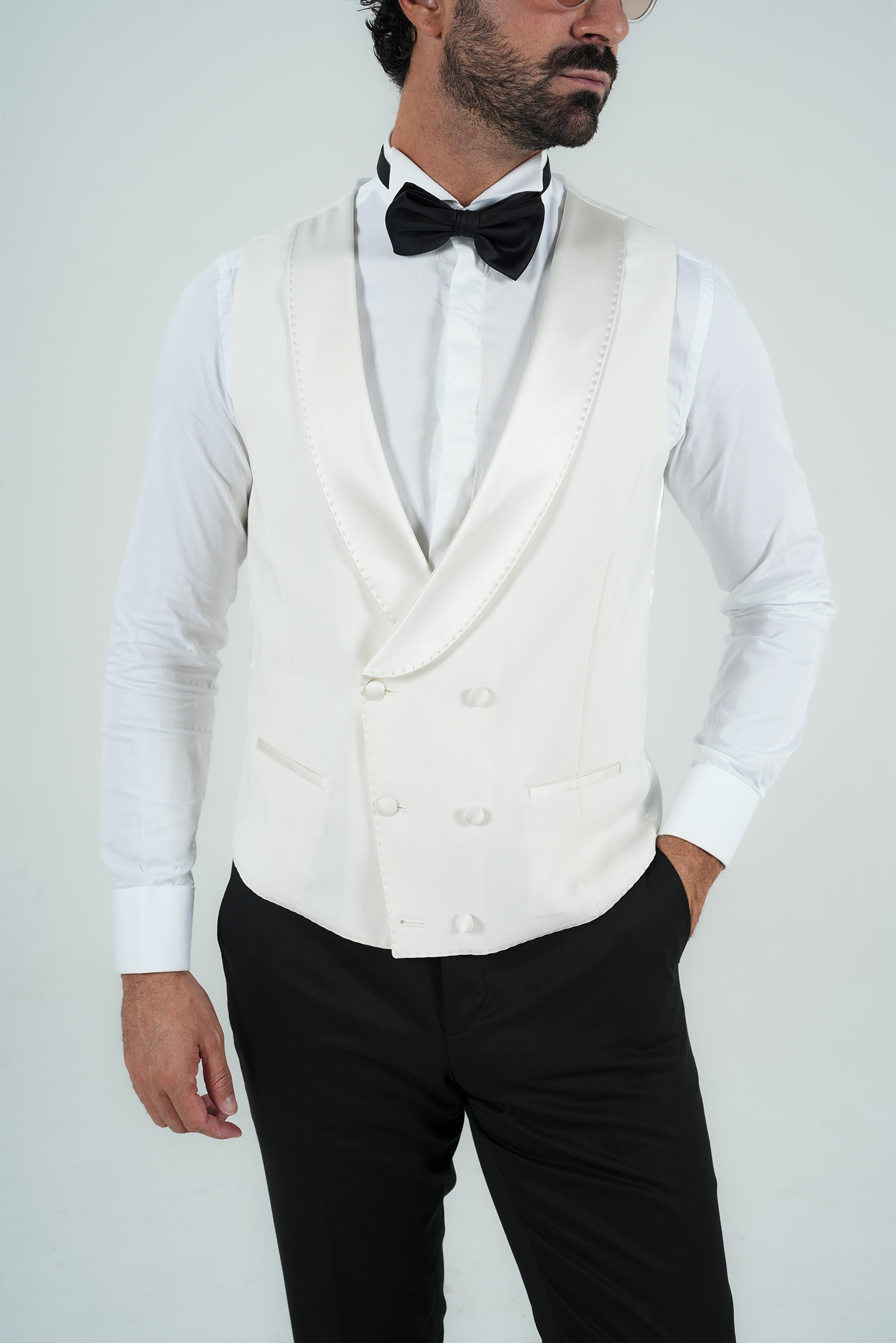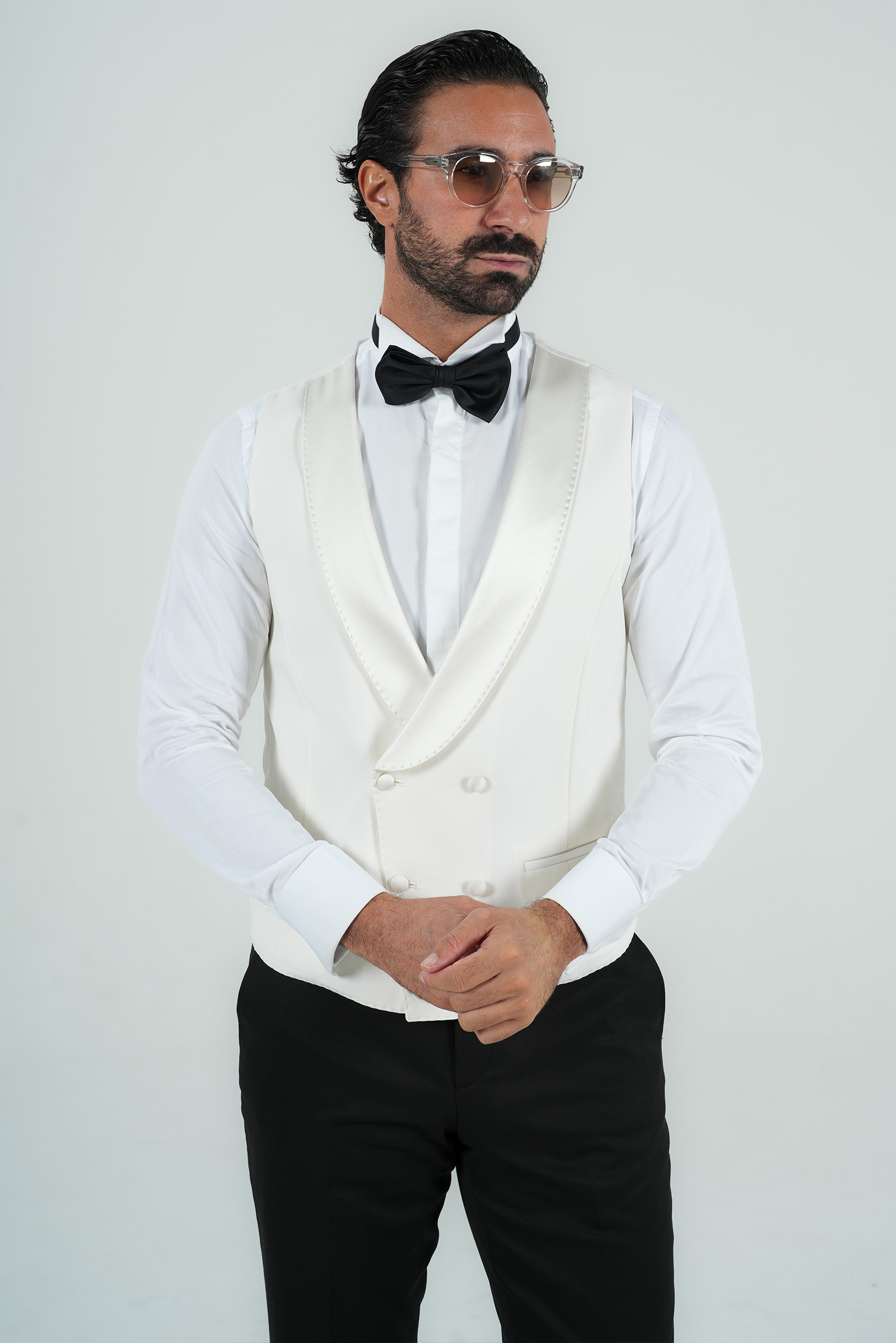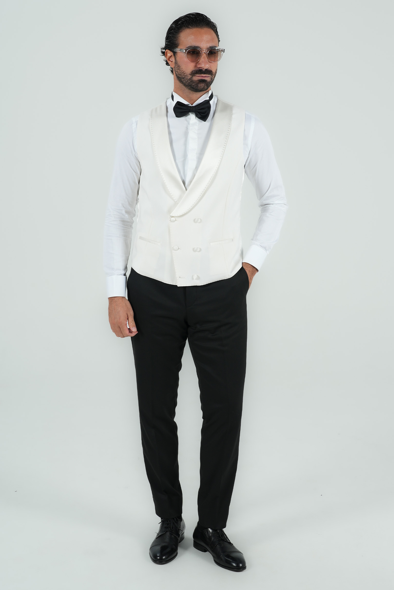Dieser elegante cremefarbene Zweiteilige Smokinganzug zeichnet sich durch ein stilvolles Design aus hochwertigem Stoff mit einem Satin-Schalkragen aus. Perfekt für formelle Anlässe, Abendpartys oder besondere Gelegenheiten, unterstreicht dieser Anzug Ihren Charme und Ihre Eleganz.