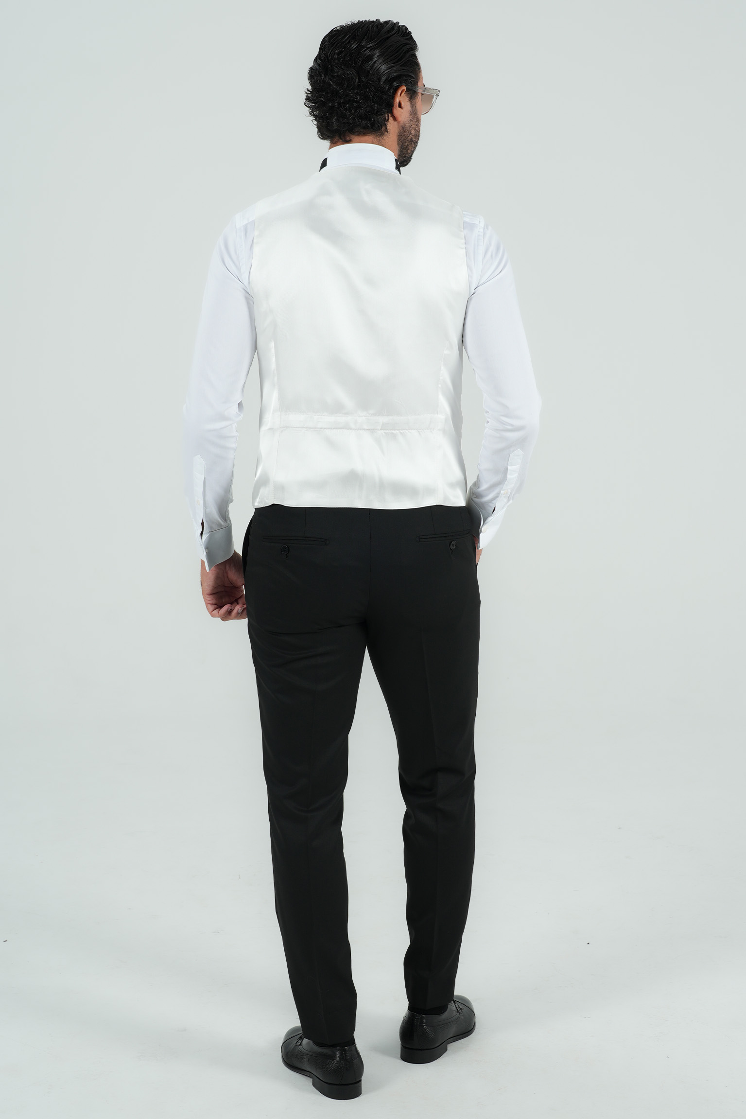 Der Anzug ist im drop 7 Schnitt gefertigt, was ihn zu einer hervorragenden Wahl für Männer macht, die einen raffinierten Stil bevorzugen und eine muskulöse Figur betonen möchten. Fendo Tailor bietet Anpassungsoptionen, um diesen doppelreihigen Smokinganzug nach Ihren Wünschen zu gestalten.