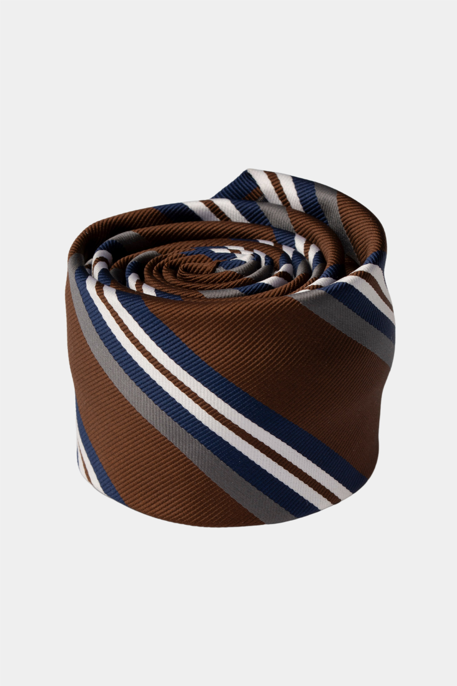 | Color: | Brown with navy blue, white, and gray diagonal stripes |