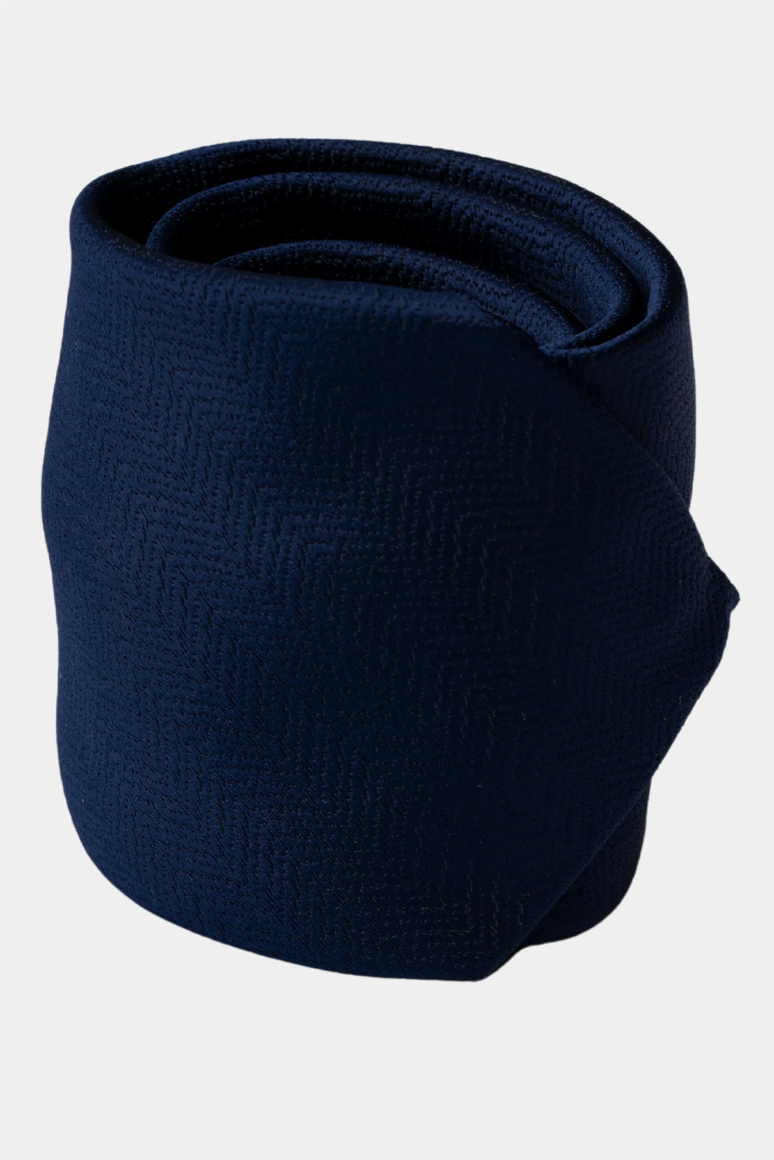 This refined dark blue tie features an elegant zigzag textured weave, creating a sophisticated balance between depth and modern simplicity.