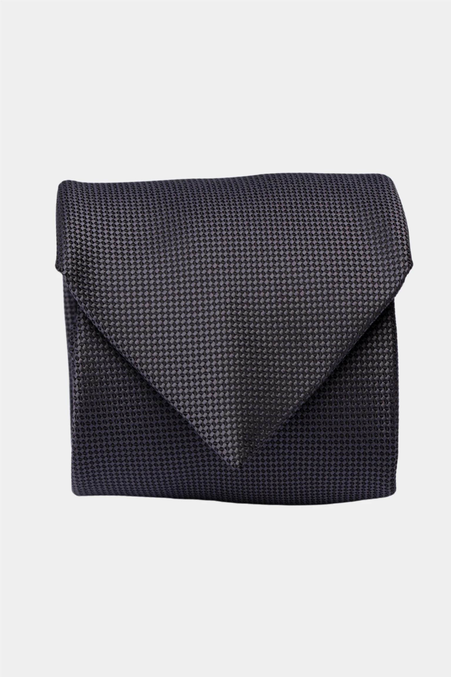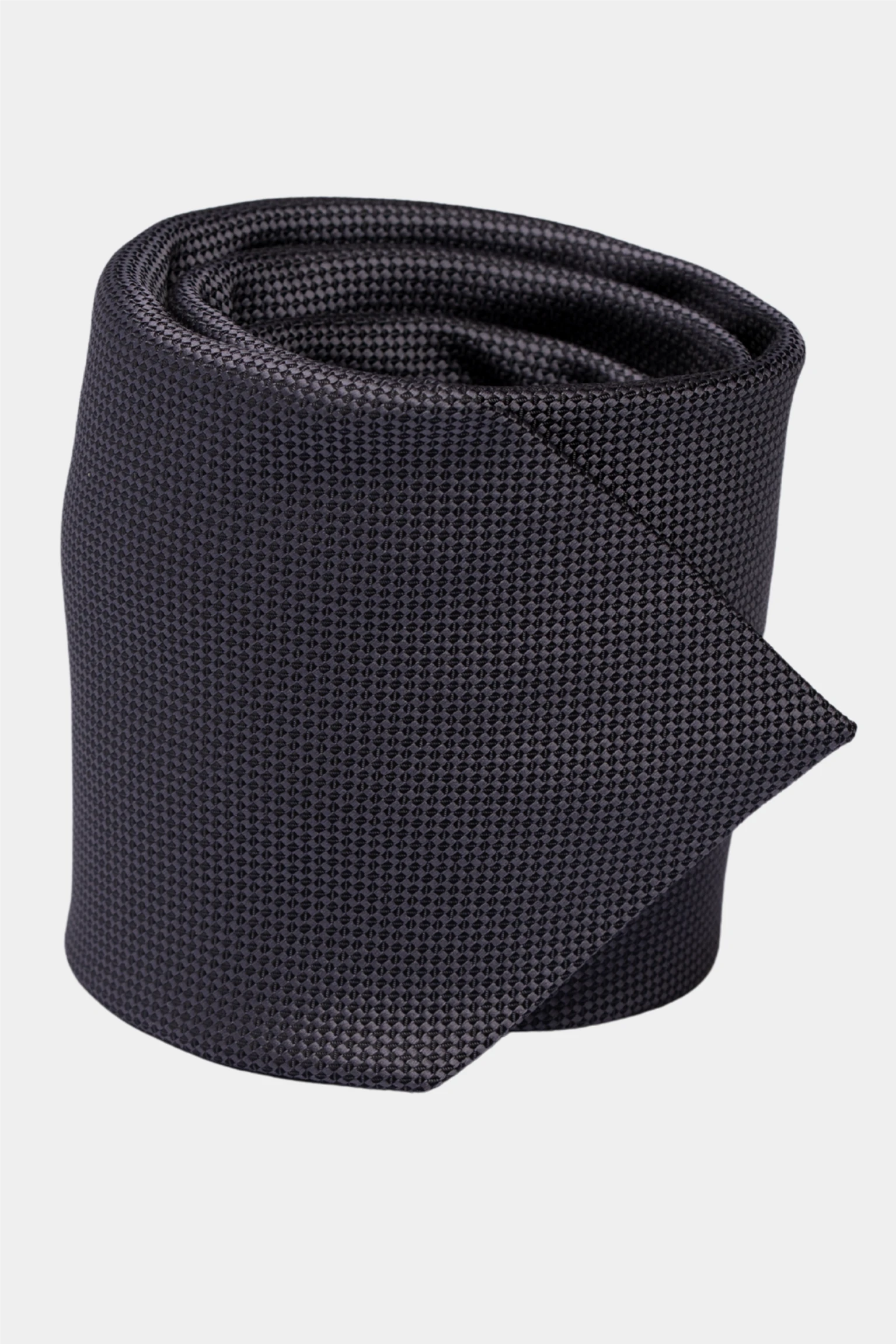 This refined gray tie showcases a subtle textured weave pattern, offering a sophisticated balance between modern minimalism and timeless elegance.