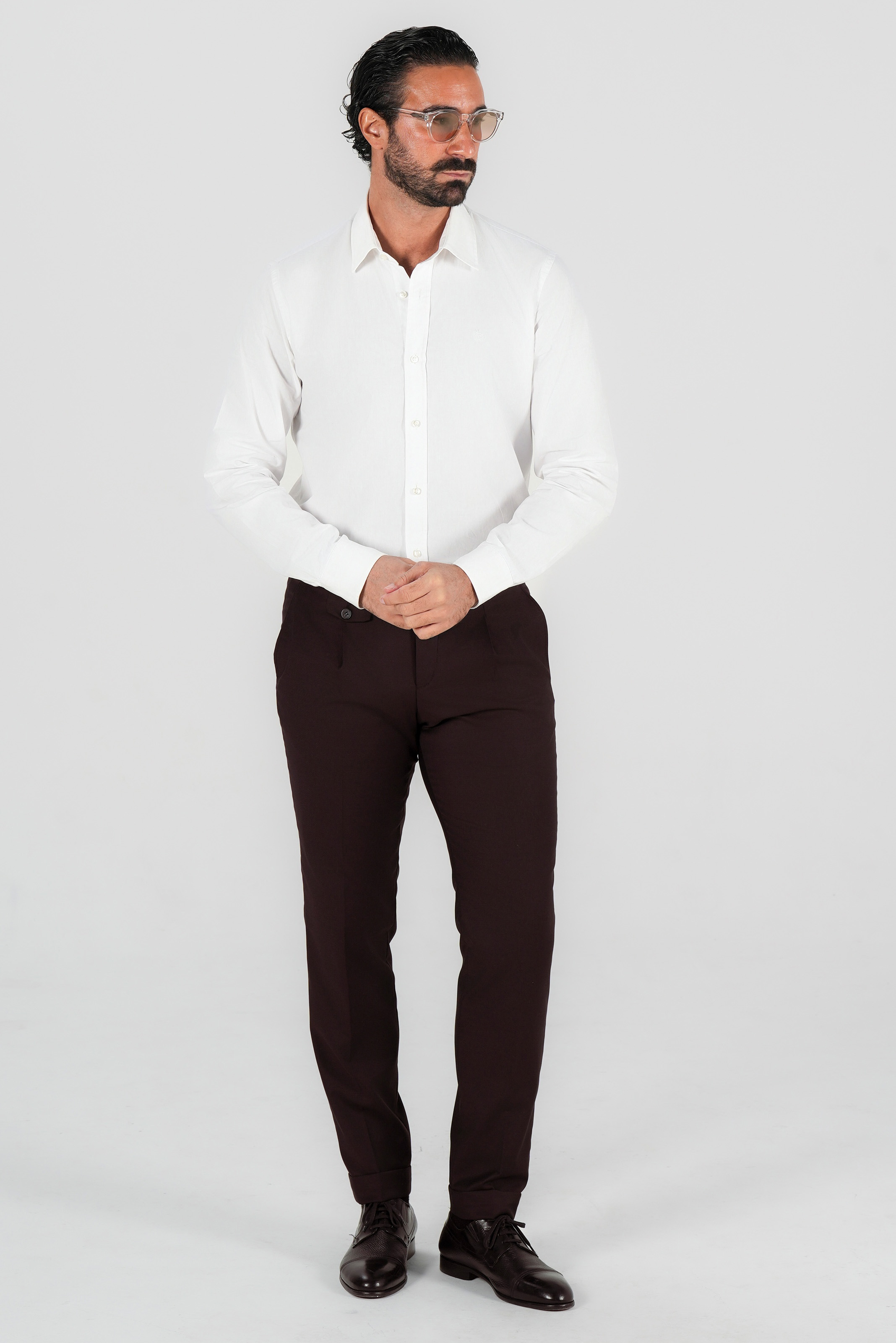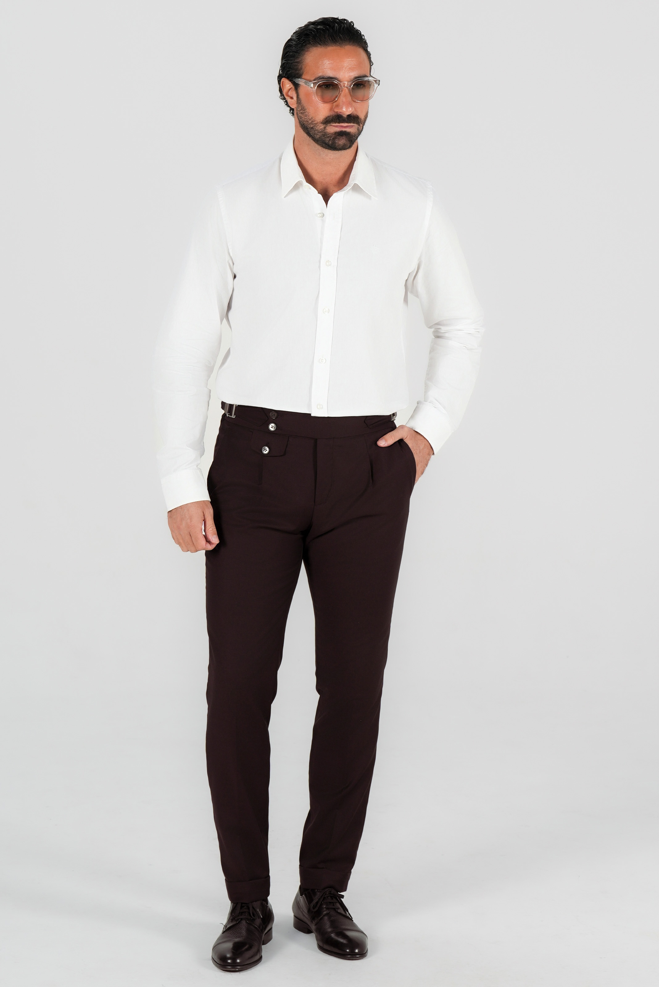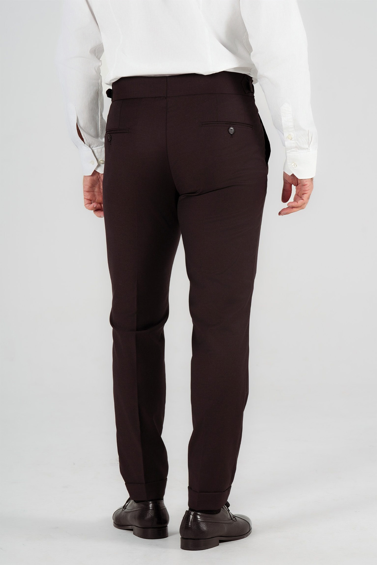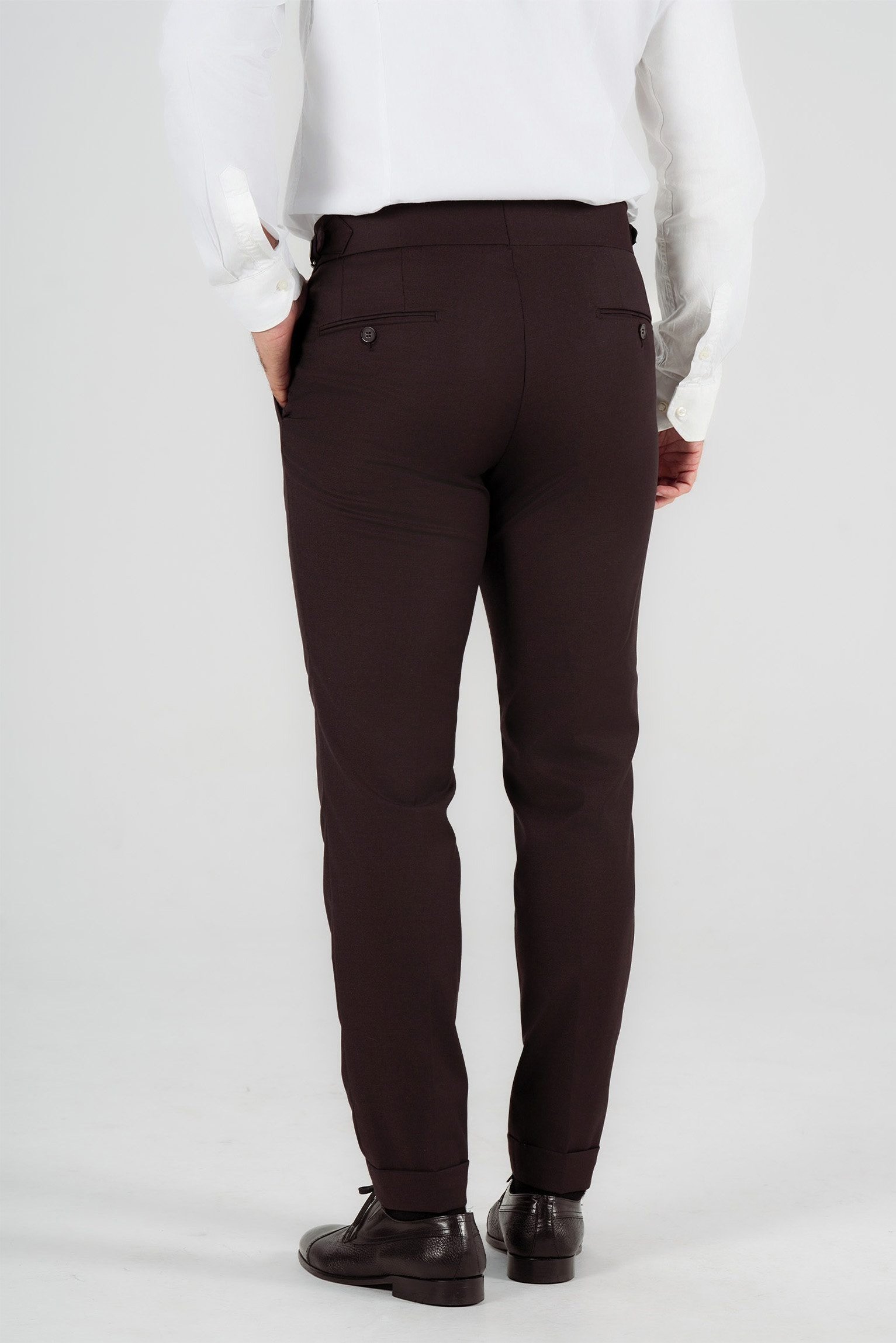Designed in the classic Italian tailored style, they feature a pleated front and adjustable side tabs for a sleek fit without the need for a belt. The deep wine red shade adds sophistication and individuality, perfect for formal occasions, office wear, or smart-casual looks.
