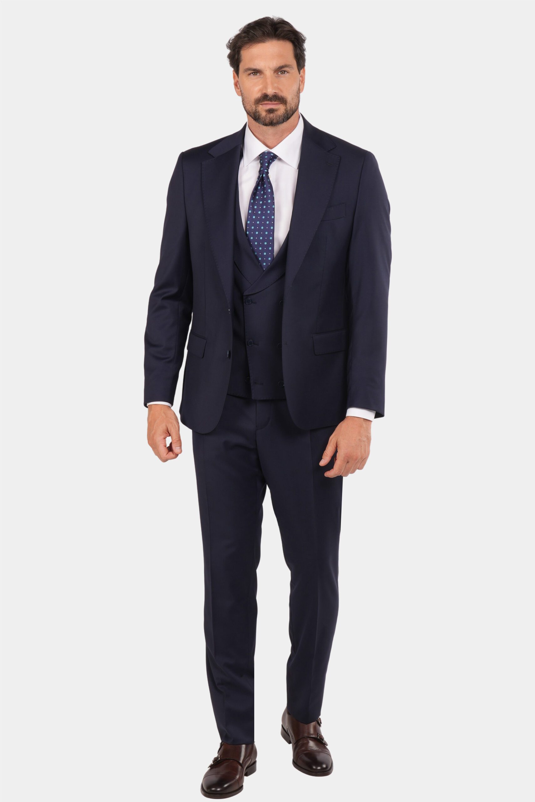 Navy Blue Slim Fit Double-Breasted Wool Suit