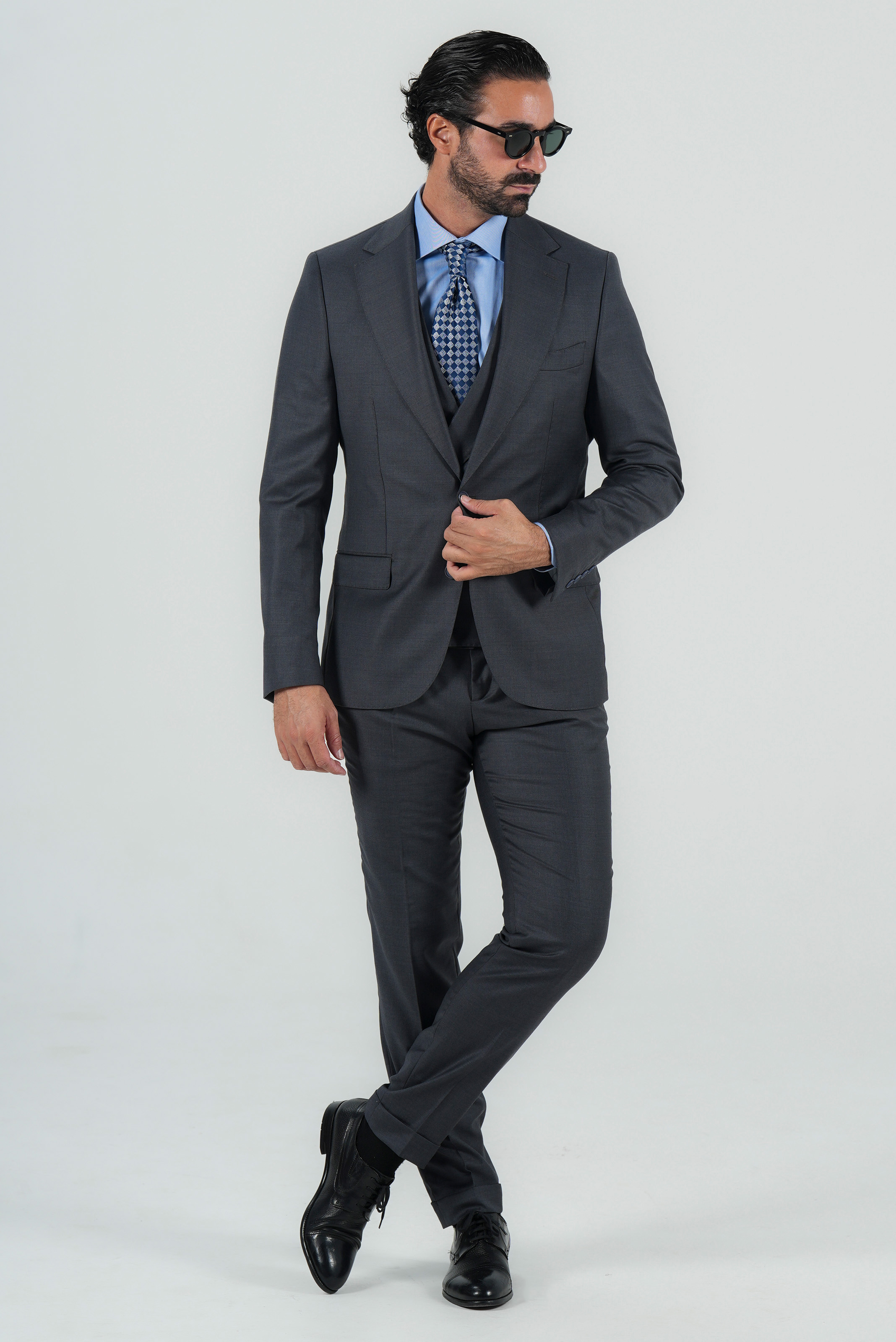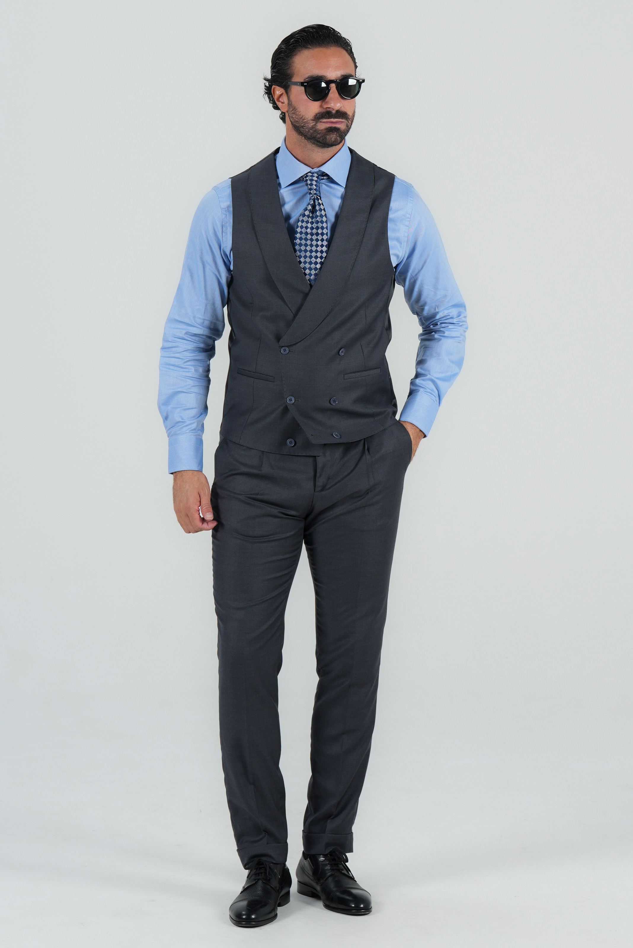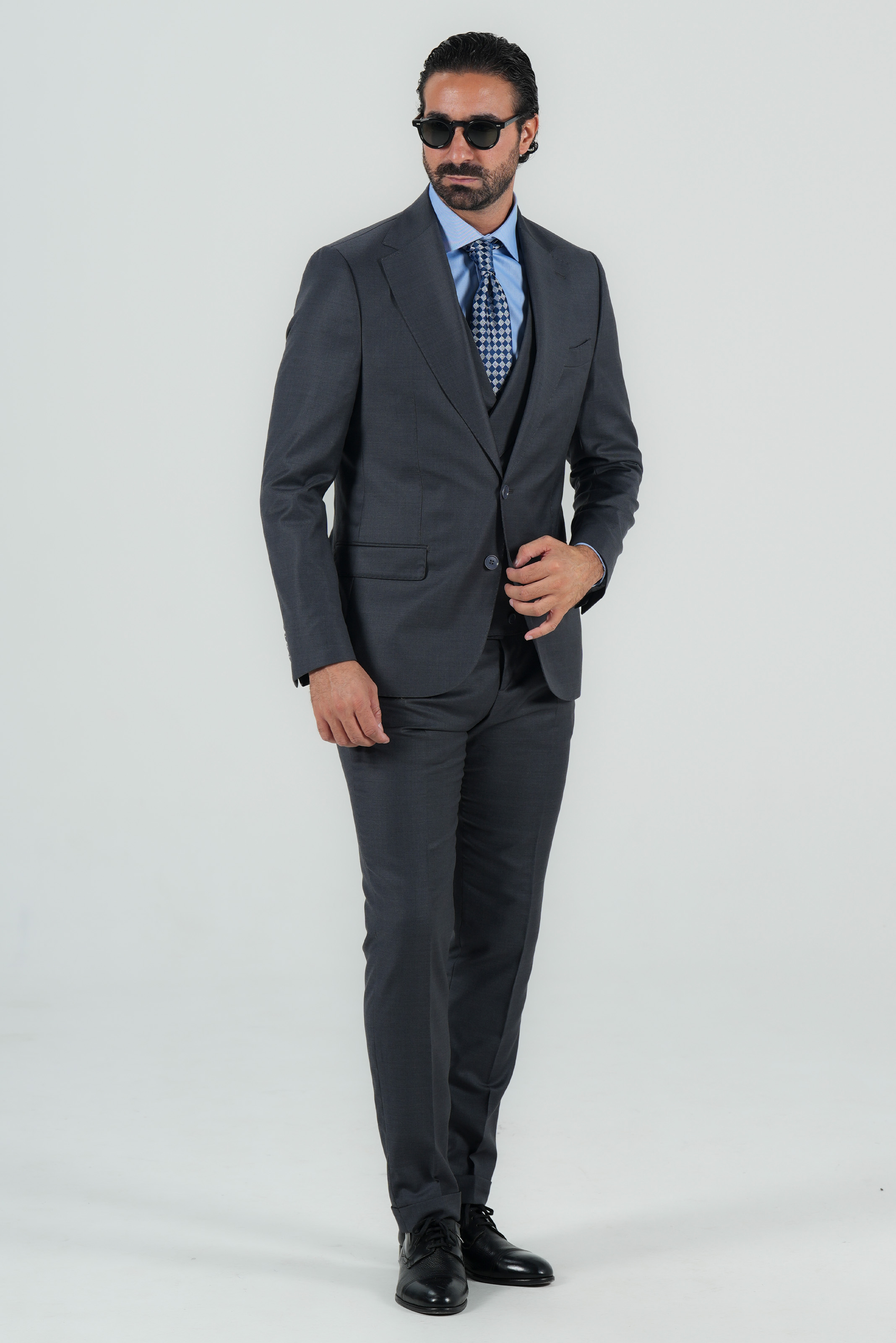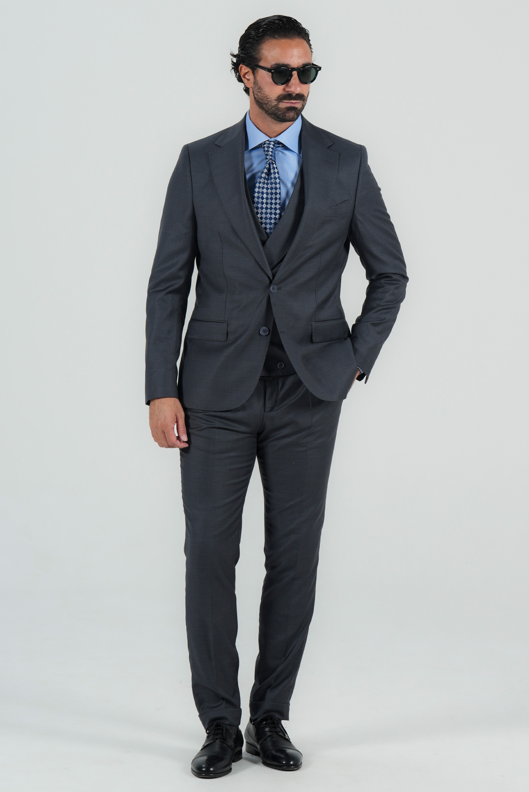 Grauer Dreiteiliger Anzug aus italienischer Wolle Slim Fit
