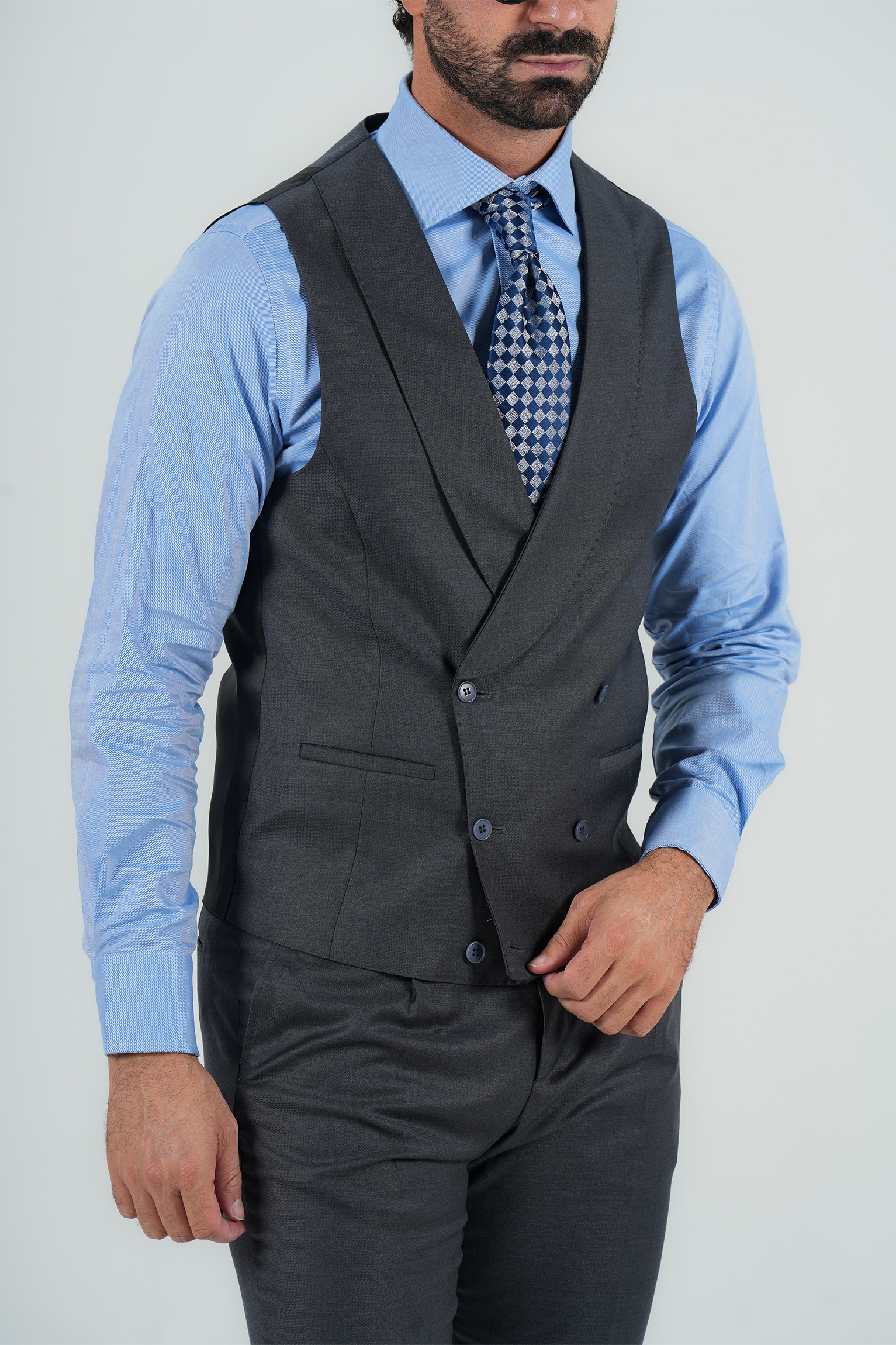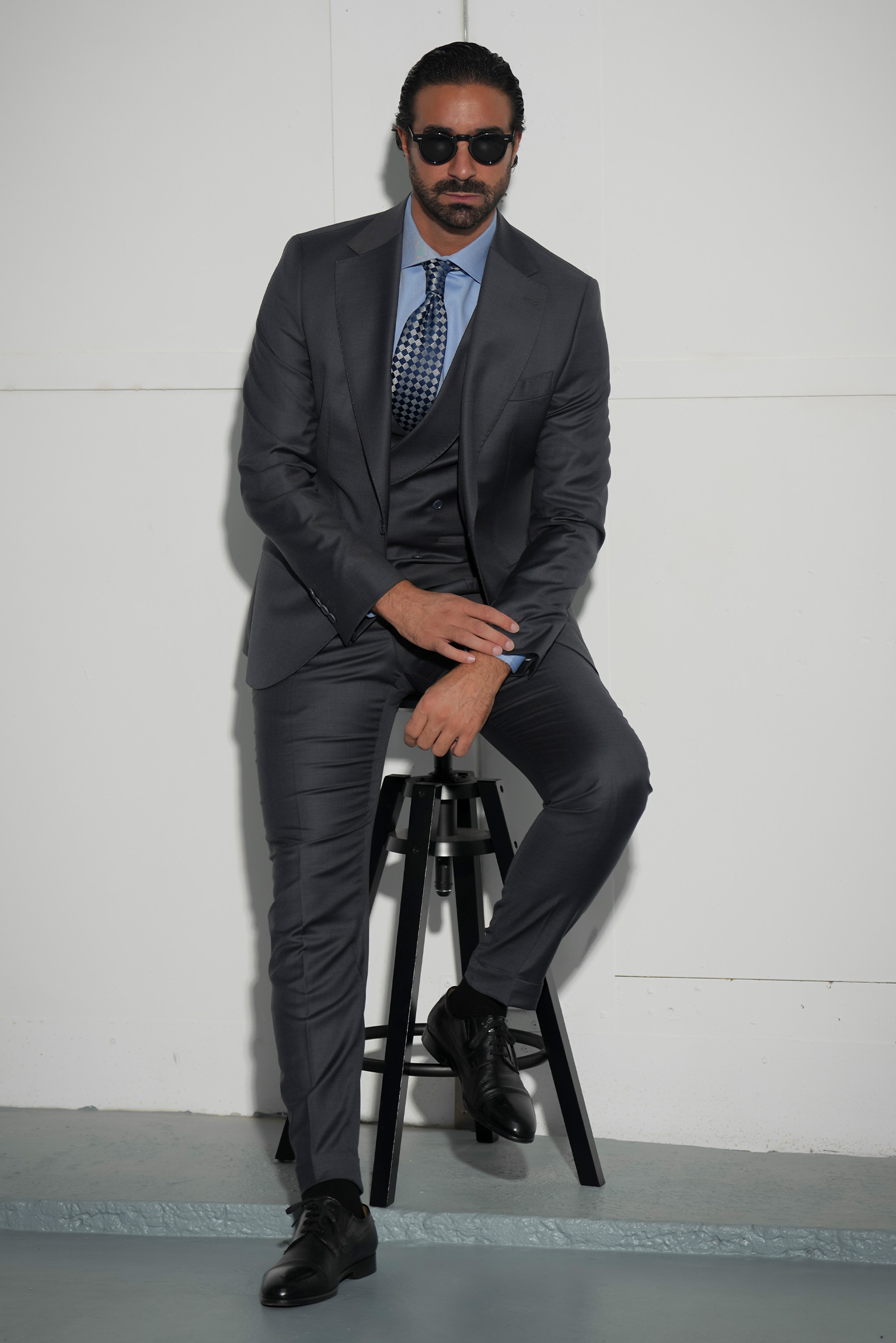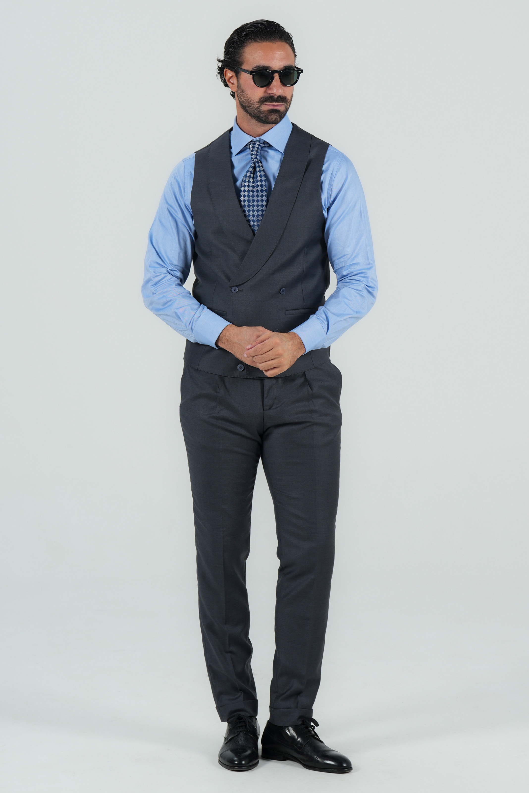 Grauer Dreiteiliger Anzug aus italienischer Wolle Slim Fit