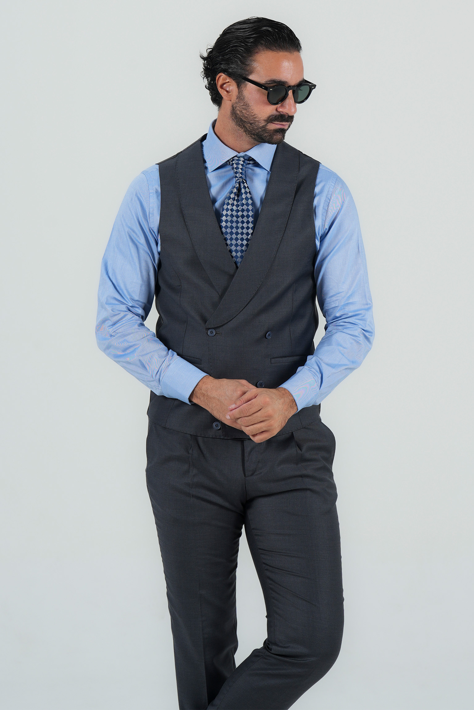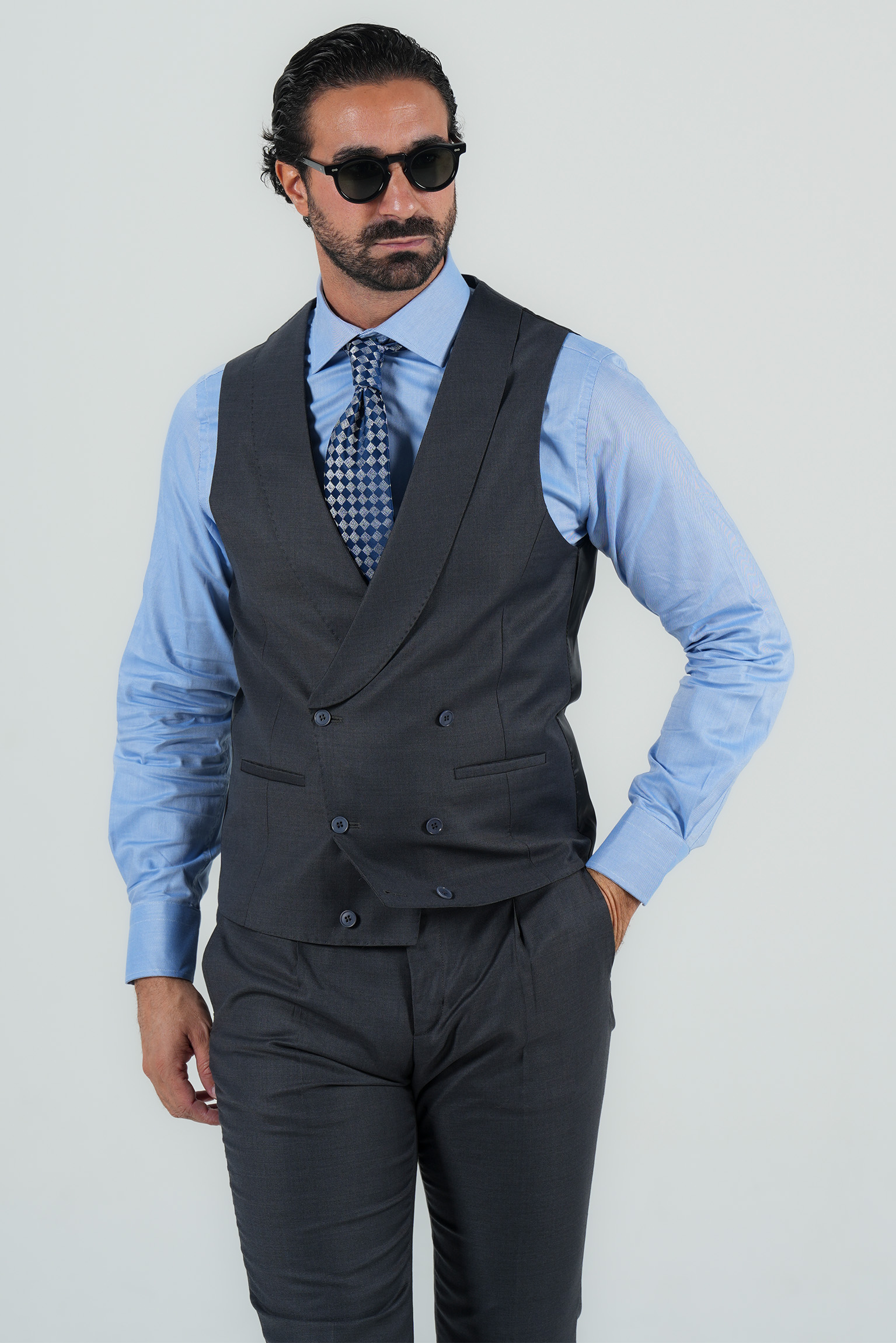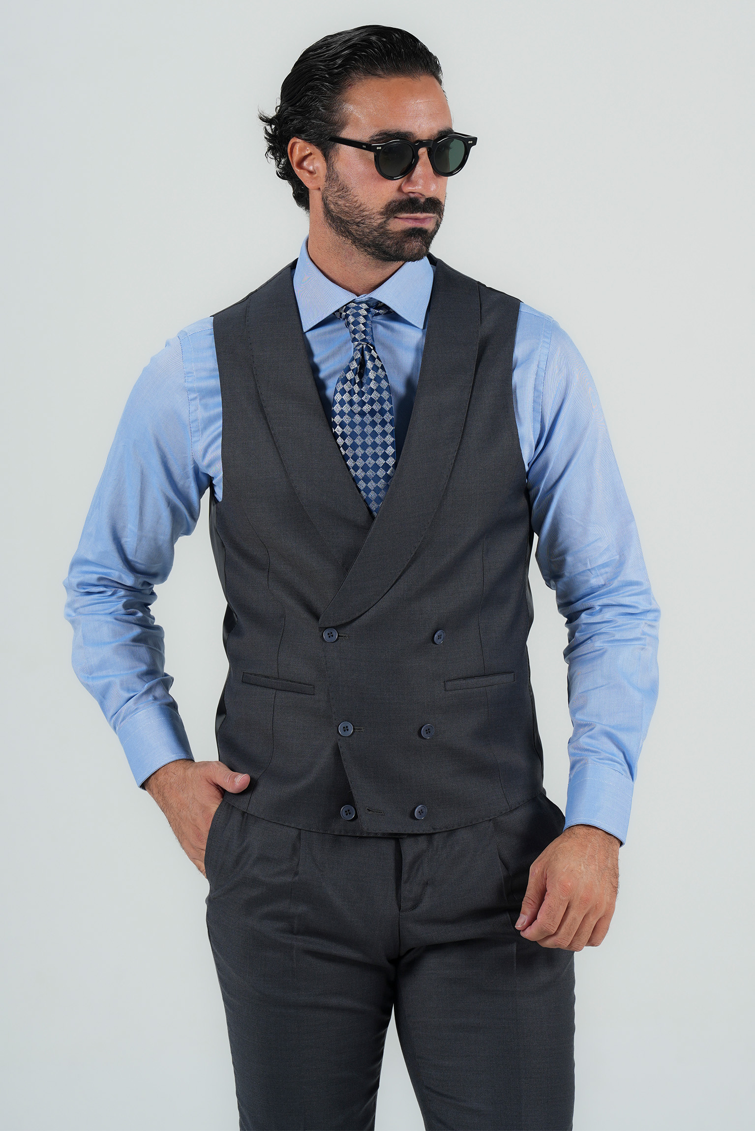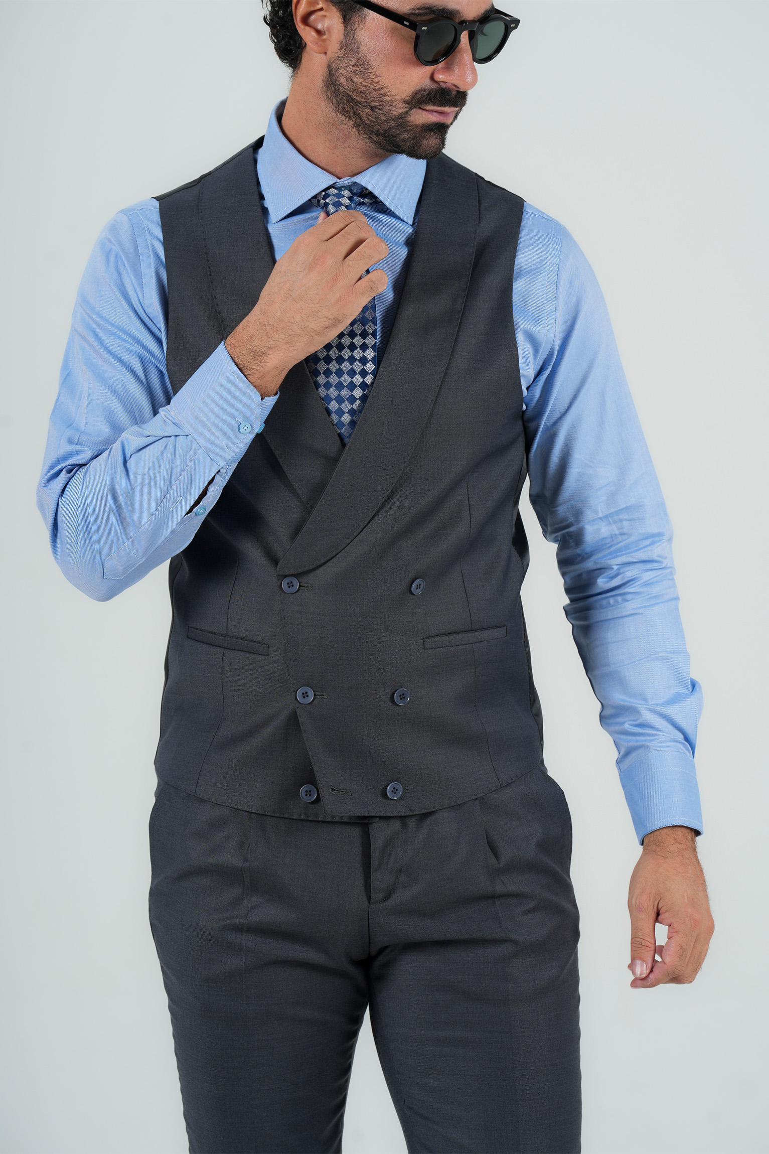 Grauer Dreiteiliger Anzug aus italienischer Wolle Slim Fit