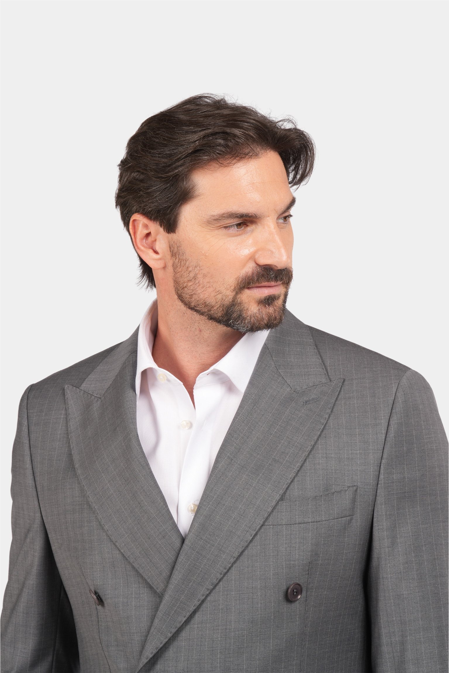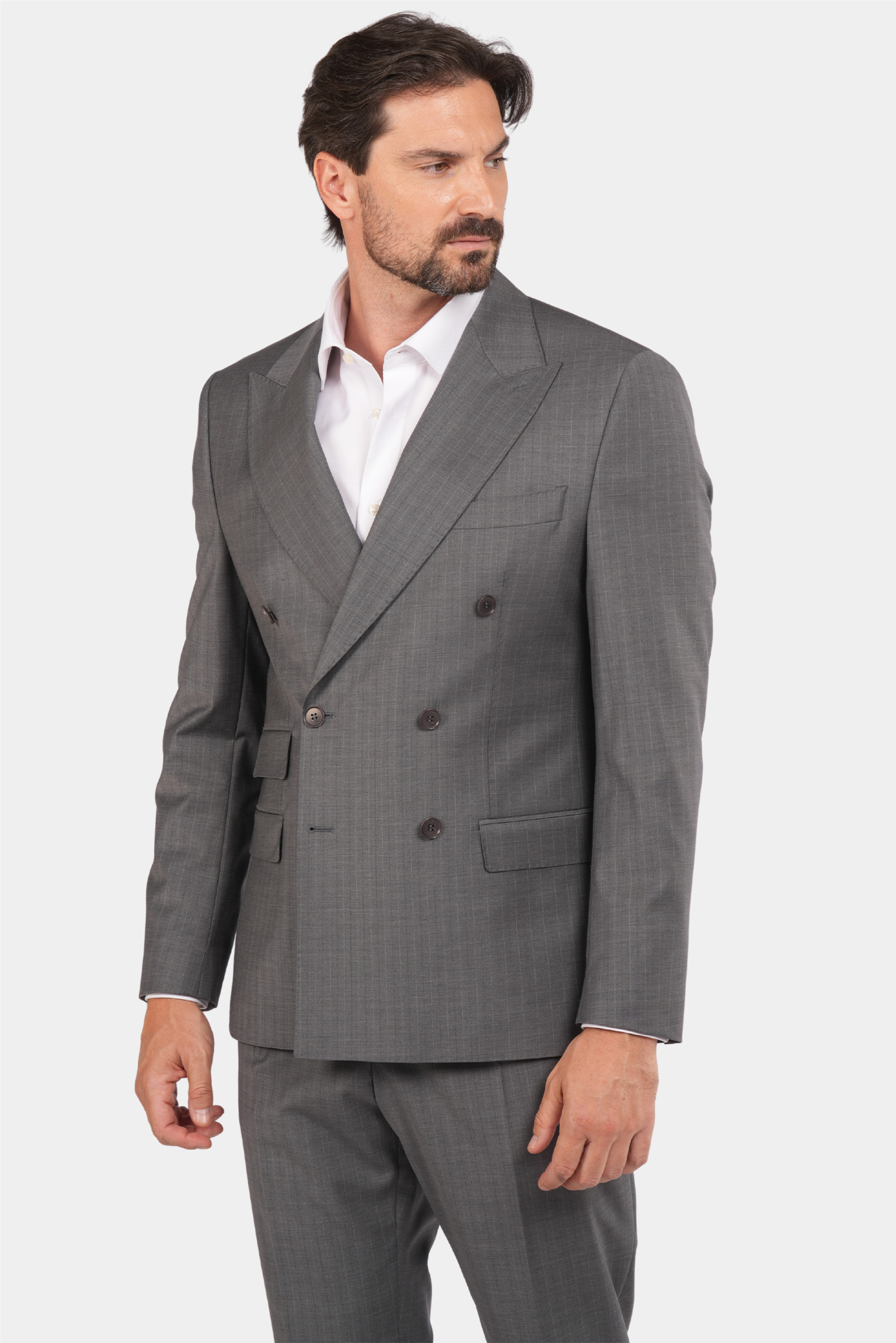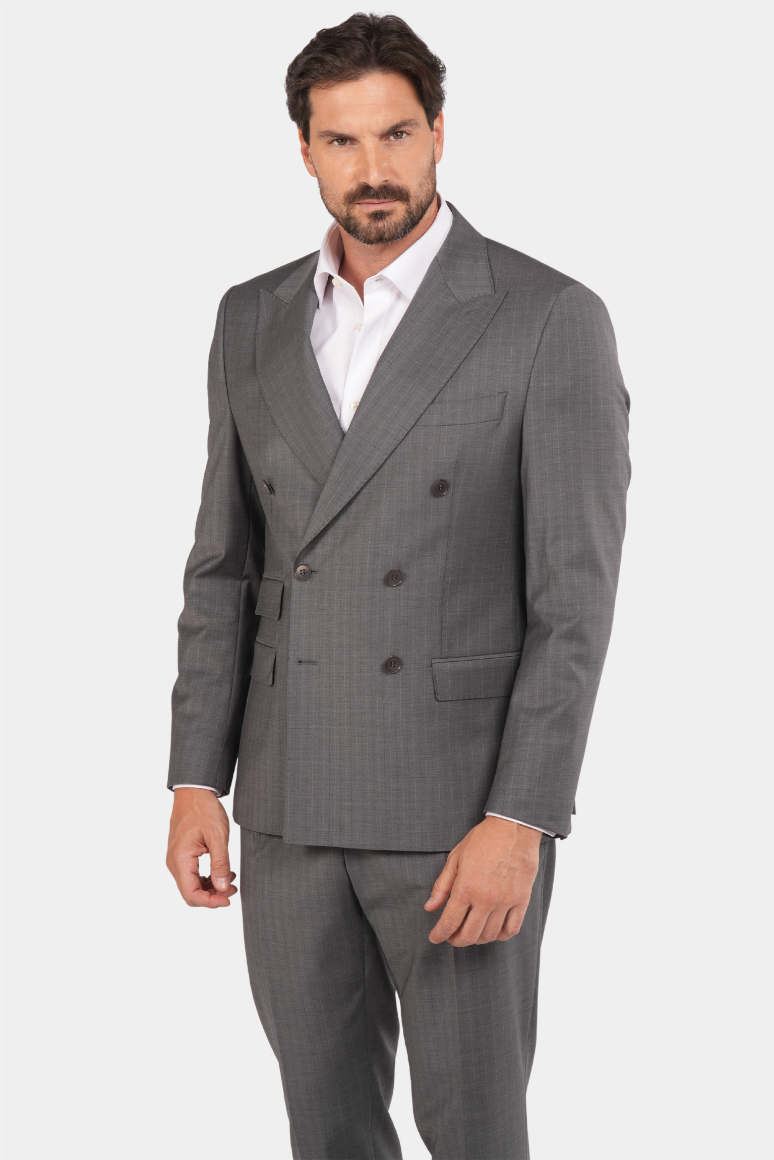 Dieser graue Slim-Fit-Zweireiher verkörpert zeitlose italienische Eleganz in ihrer dezentesten Form. Gefertigt aus 100 % Super 120s-Wolle von Vitale Barberis Canonico, besticht er durch eine glatte Textur, einen eleganten Fall und höchsten Tragekomfort. Die strukturierte Schulterpartie und das Spitzrevers betonen die selbstbewusste Silhouette, während die Halb-Canvas-Konstruktion für Langlebigkeit und Formbeständigkeit sorgt. Vollständig mit Viskose gefüttert, lässt sich dieser Anzug mühelos sowohl im Business als auch bei formellen Anlässen tragen – stilvoll, klassisch und souverän.