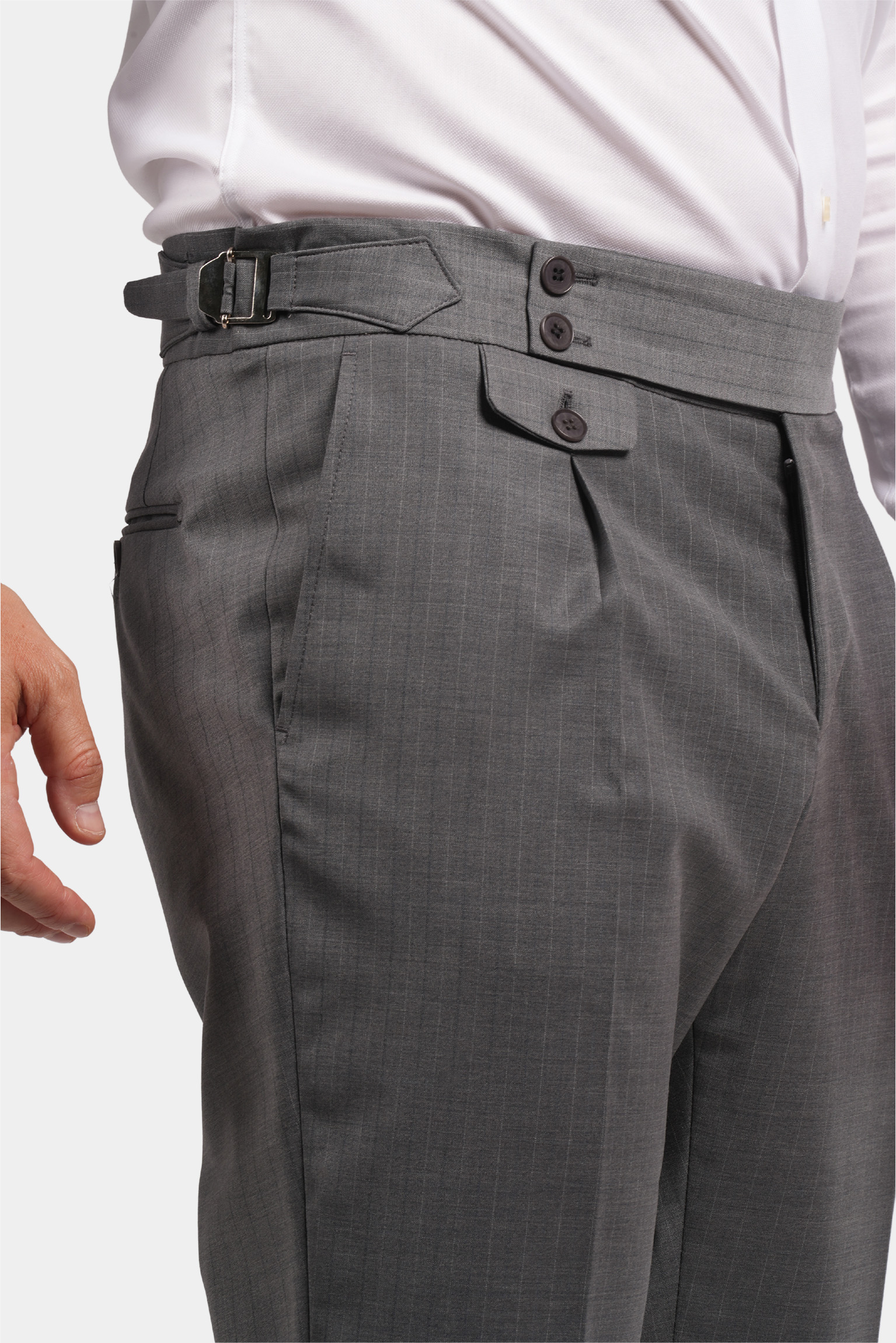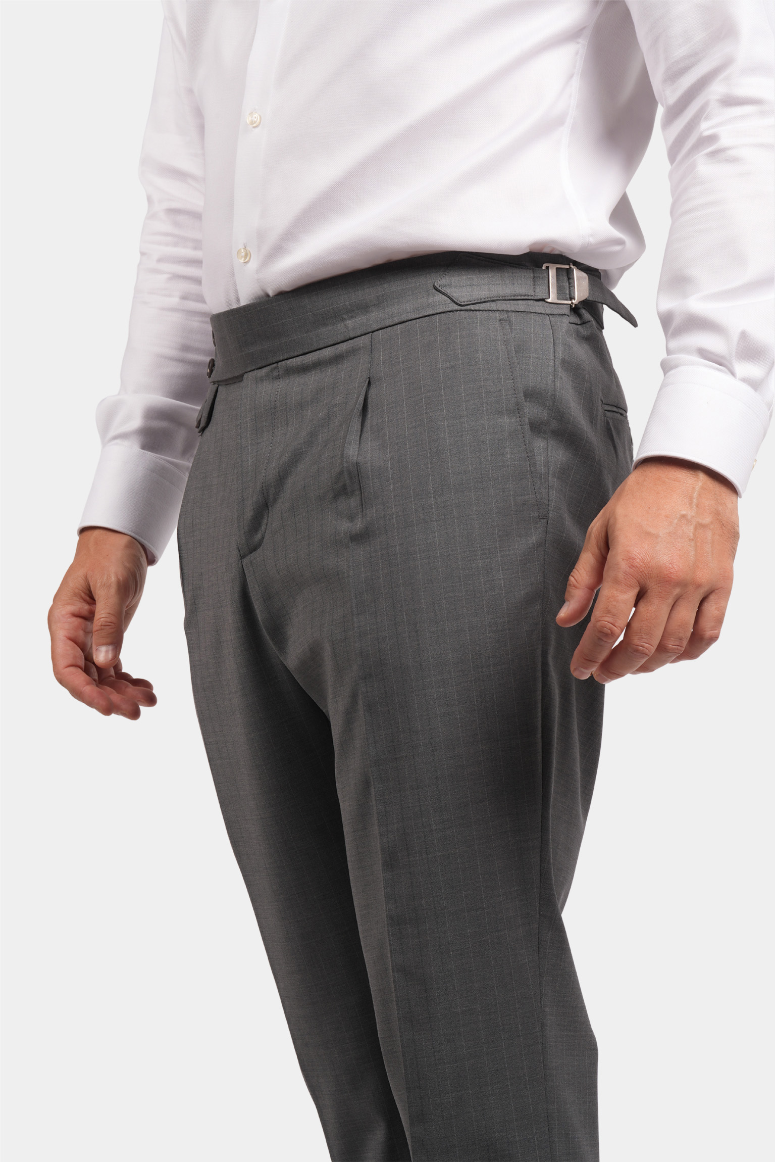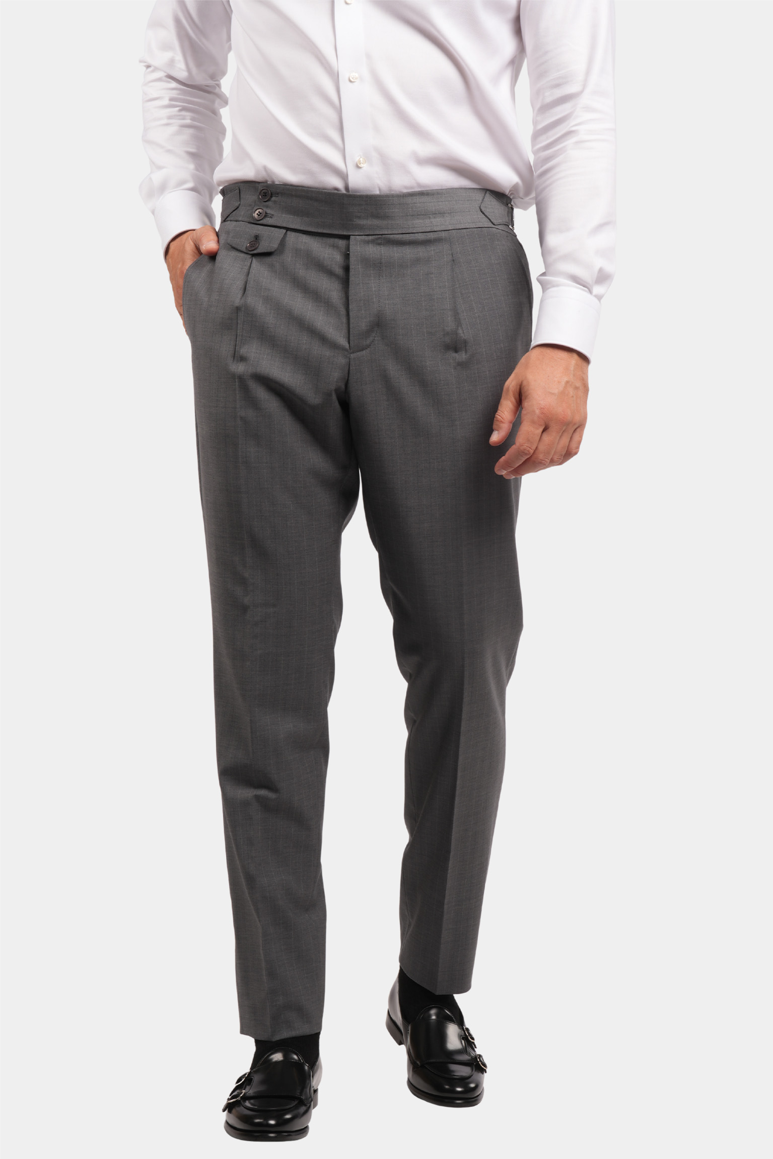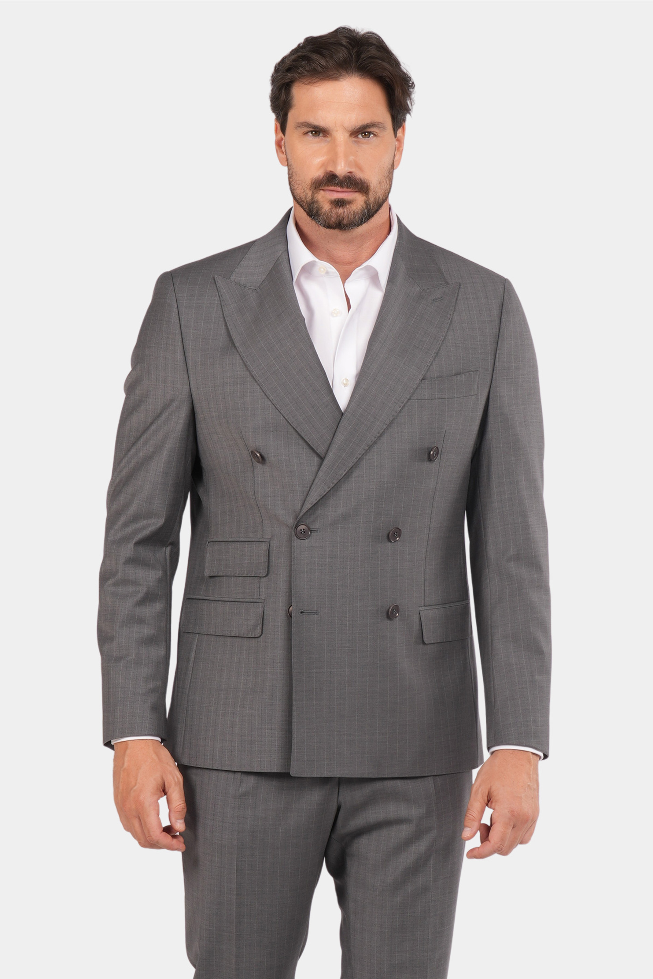 Dieser graue Slim-Fit-Zweireiher verkörpert zeitlose italienische Eleganz in ihrer dezentesten Form. Gefertigt aus 100 % Super 120s-Wolle von Vitale Barberis Canonico, besticht er durch eine glatte Textur, einen eleganten Fall und höchsten Tragekomfort. Die strukturierte Schulterpartie und das Spitzrevers betonen die selbstbewusste Silhouette, während die Halb-Canvas-Konstruktion für Langlebigkeit und Formbeständigkeit sorgt. Vollständig mit Viskose gefüttert, lässt sich dieser Anzug mühelos sowohl im Business als auch bei formellen Anlässen tragen – stilvoll, klassisch und souverän.