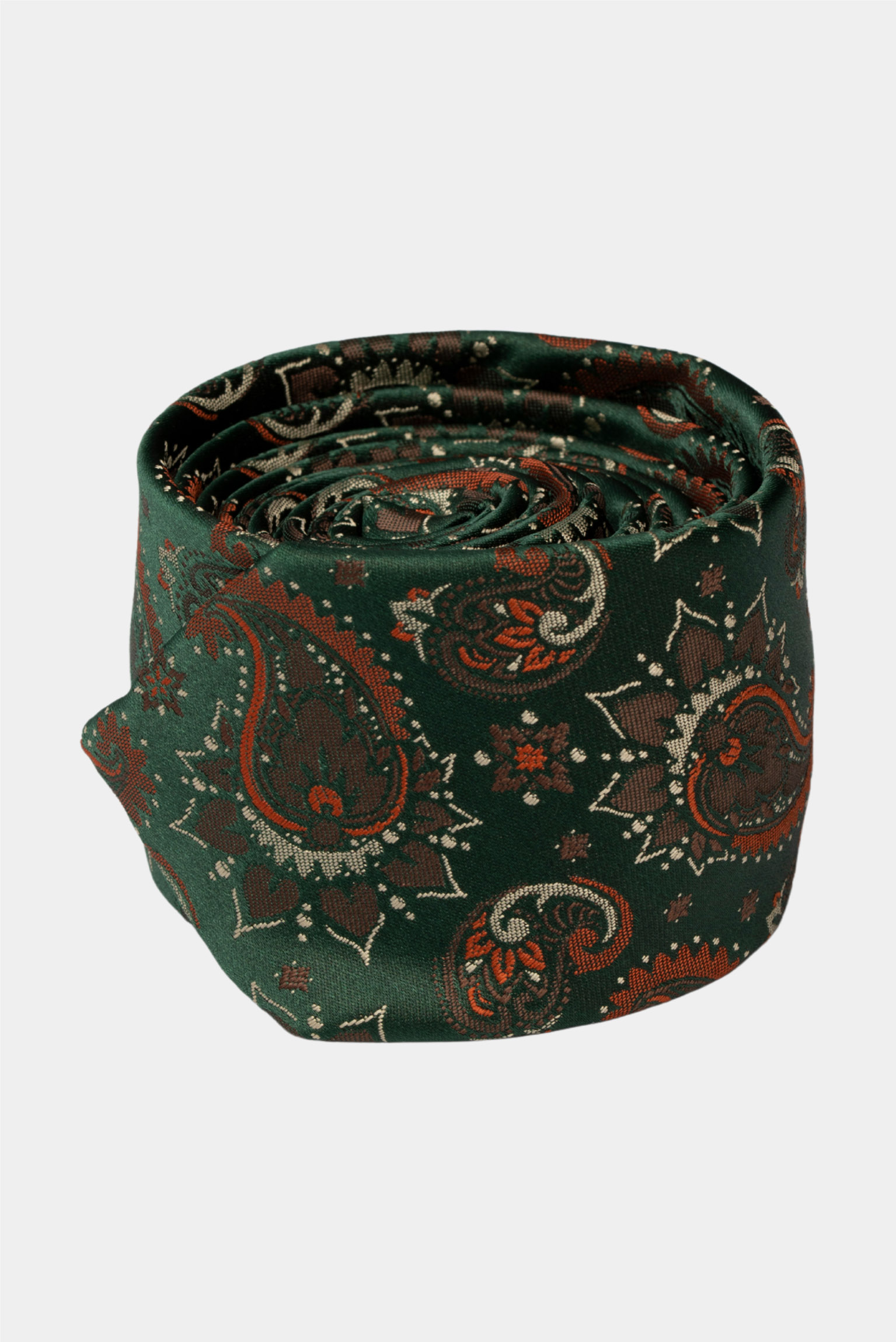 Diese elegante grüne Krawatte verleiht jedem formellen Look eine raffinierte Note. Hergestellt in der Türkei aus 100 % hochwertiger Mikrofaser, bietet sie eine glatte Textur, ein leichtes Tragegefühl und langanhaltende Formbeständigkeit. Das Paisley-Muster in warmen Erdtönen sorgt für einen edlen Kontrast und macht sie zu einer vielseitigen Wahl für Business- und Abendgarderobe.