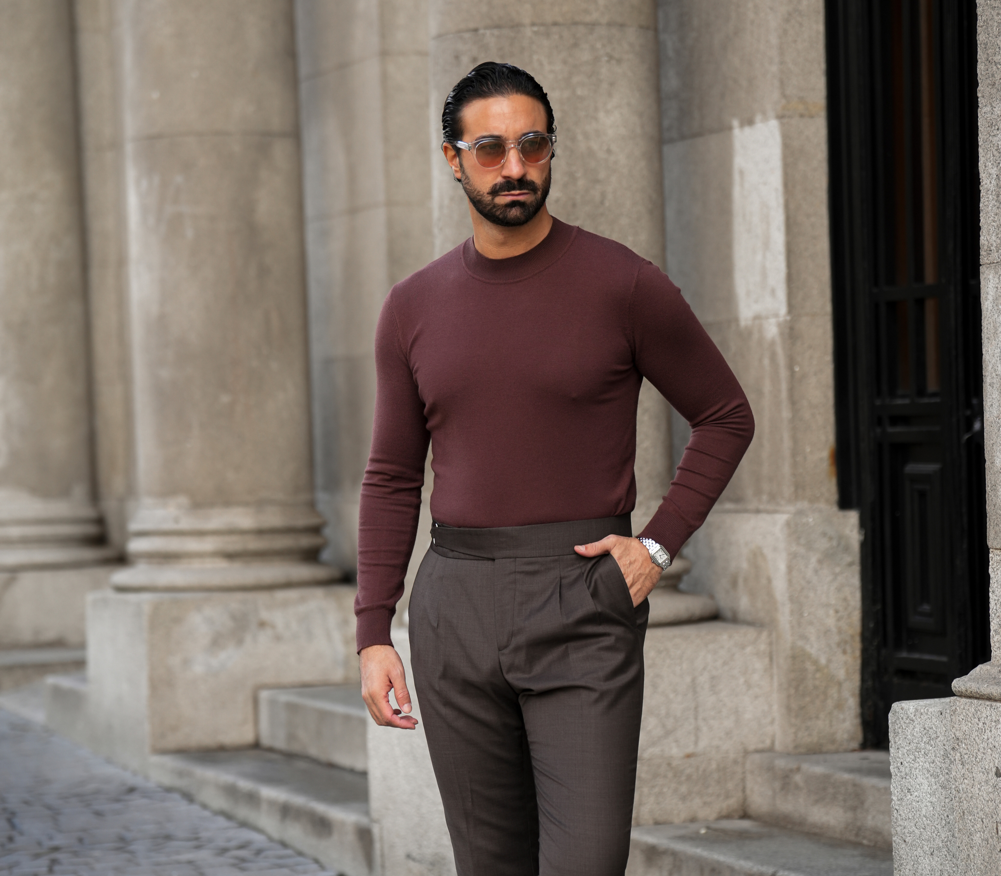 Weinrote Hose aus italienischer Wolle Tailored Fit