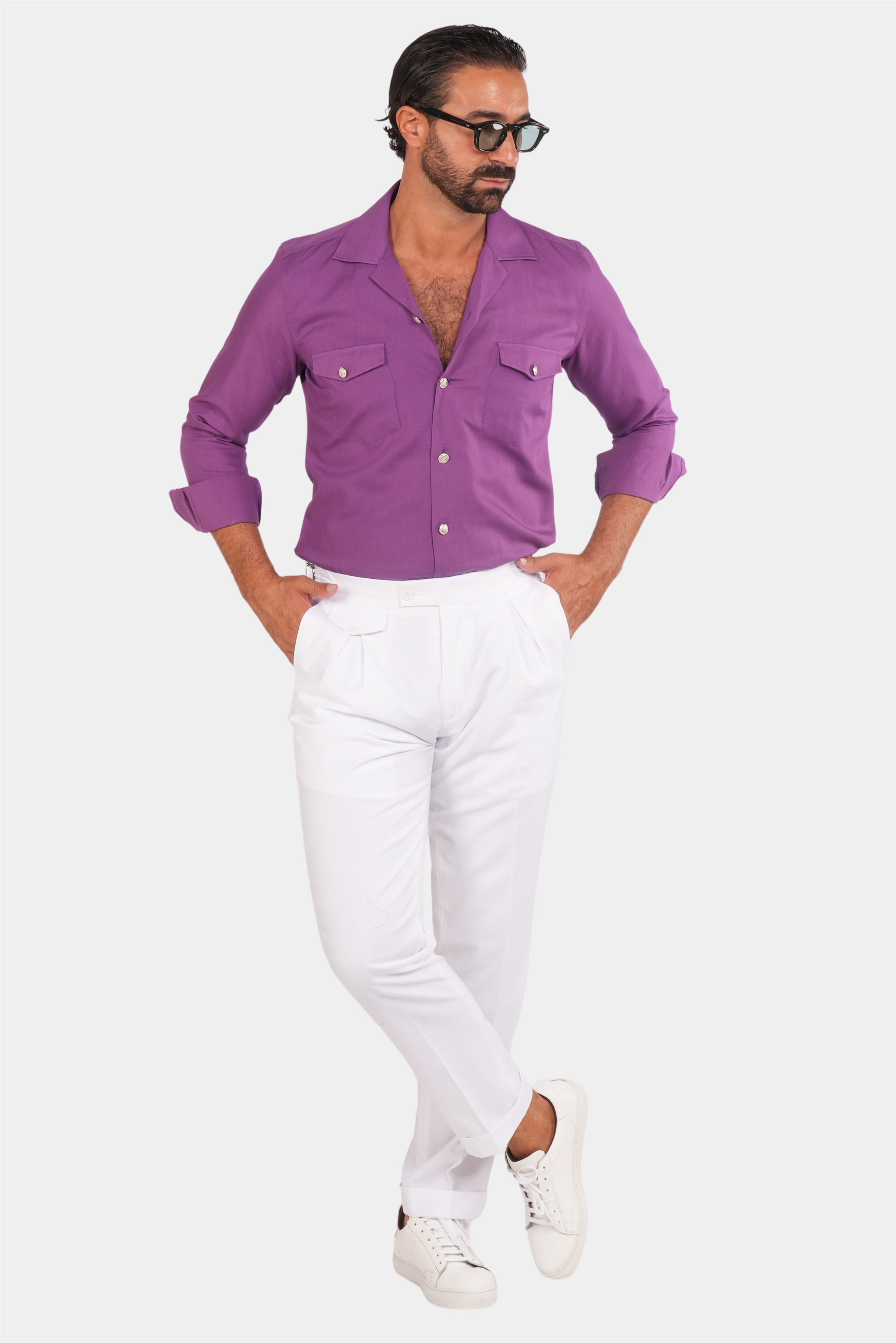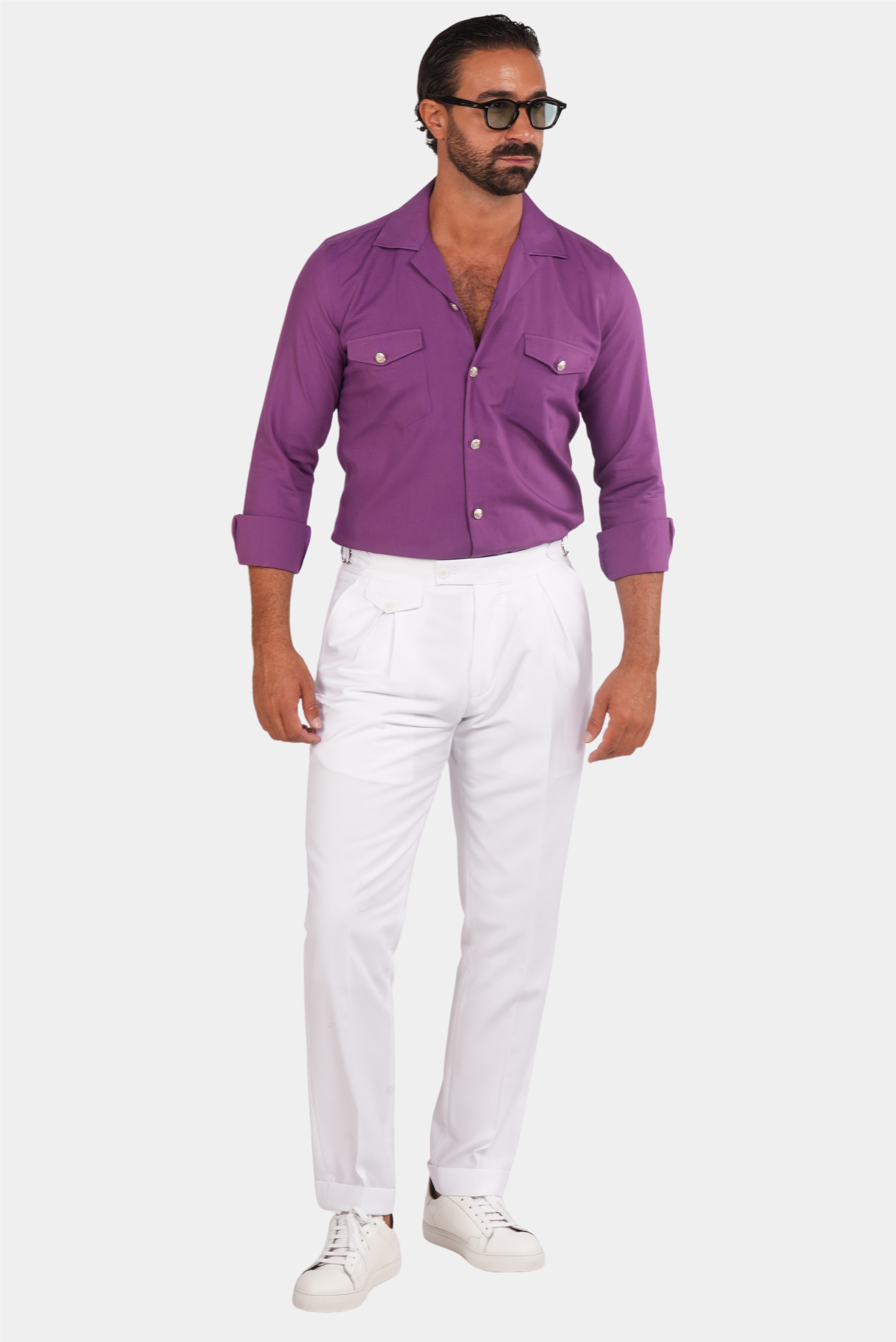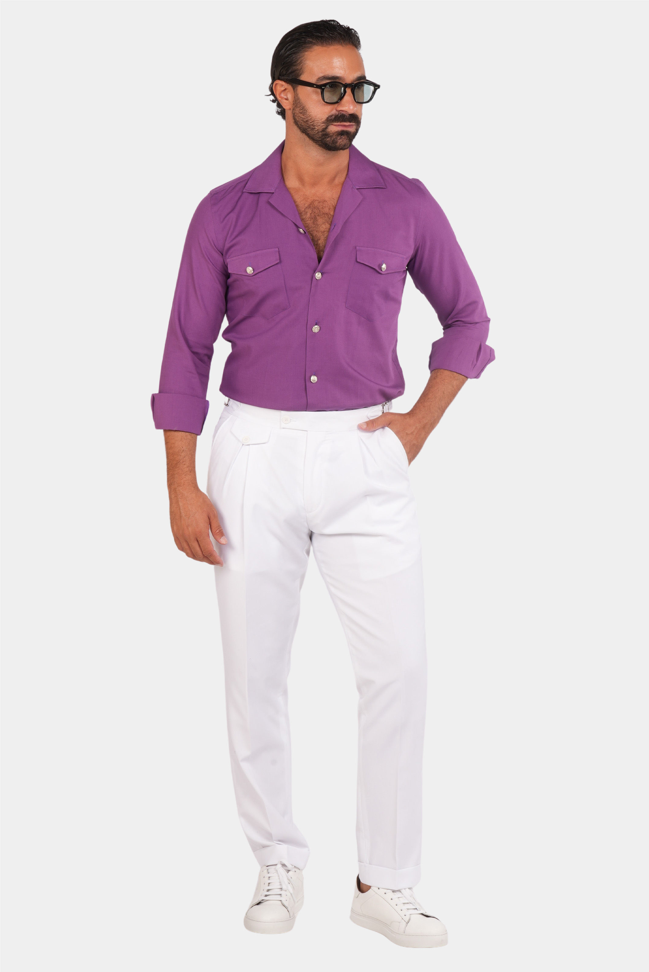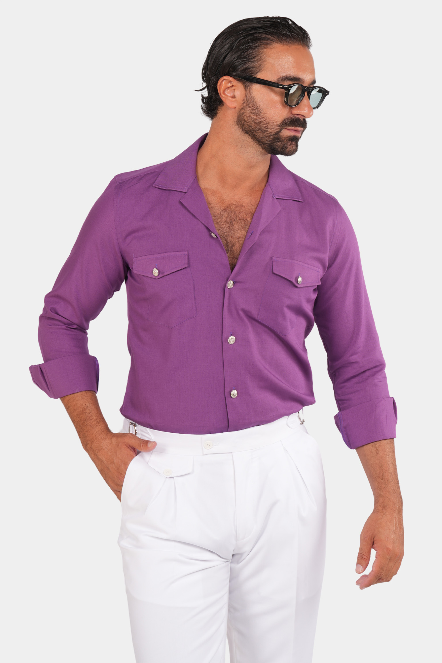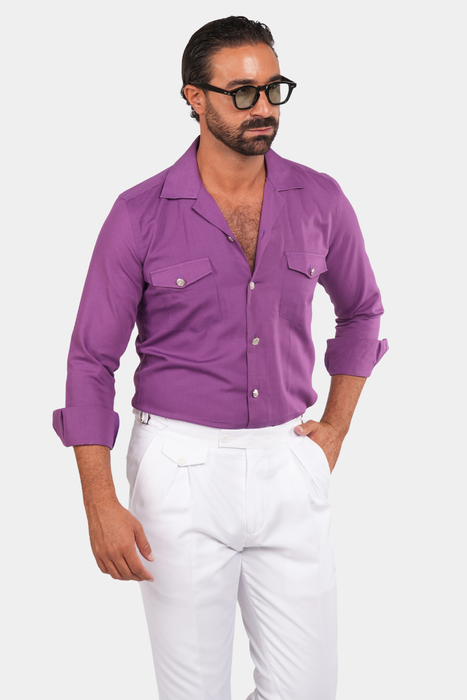 Wenn du einen außergewöhnlichen, stilvollen und mutigen Look suchst, ist das lila Safari-Hemd die perfekte Wahl. Dieses Hemd mit speziellem italienischem Design vereint Eleganz mit modernem Charme und sorgt für einen einzigartigen Auftritt.