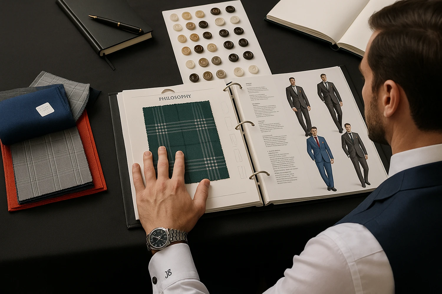 Personalisieren Sie Ihr Kleidungsstück, indem Sie jedes Detail auswählen – von Revers und Knöpfen bis hin zu Innenfuttern und Nähten.