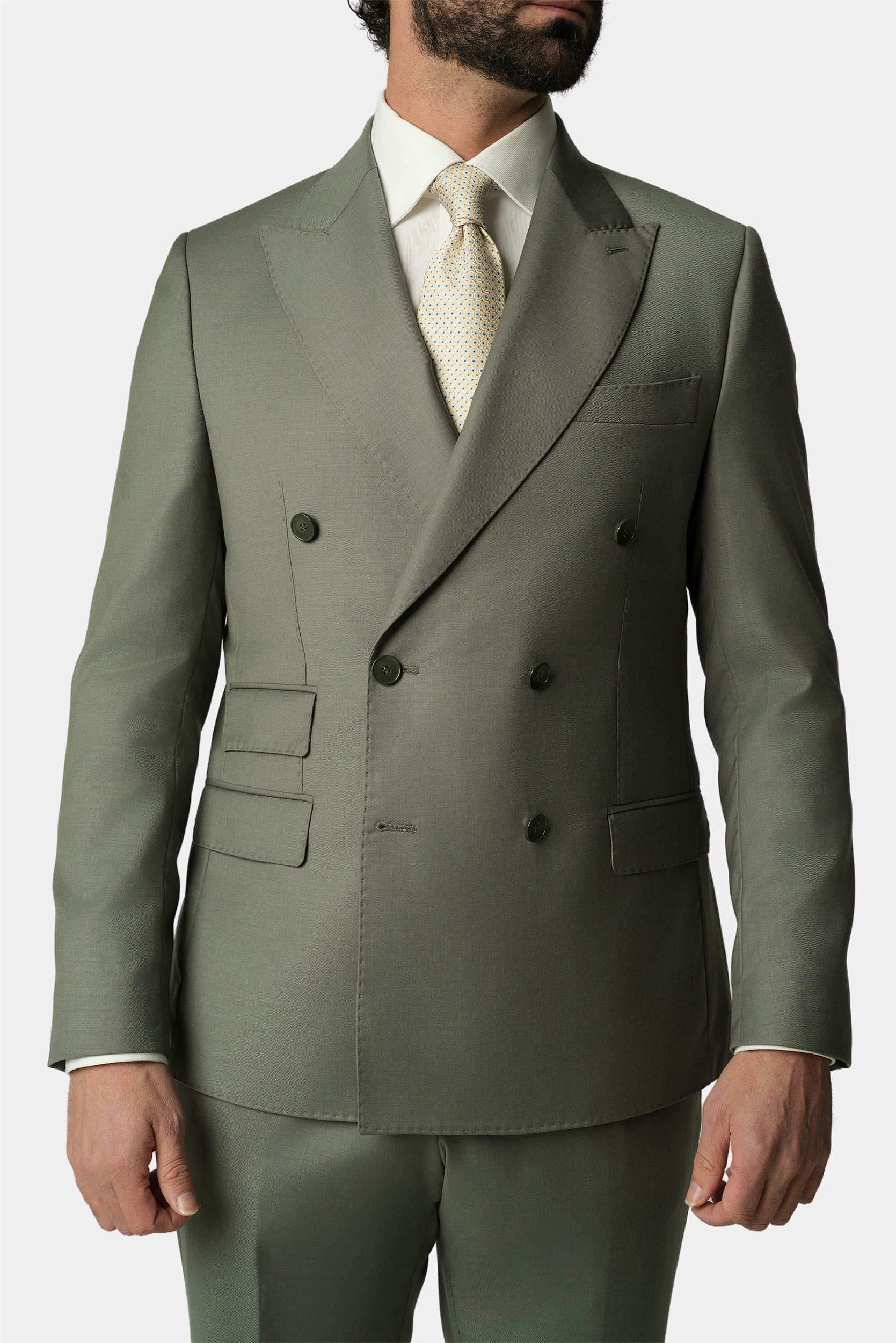 Hellgrüner doppelreihiger Slim-Fit-Wollanzug