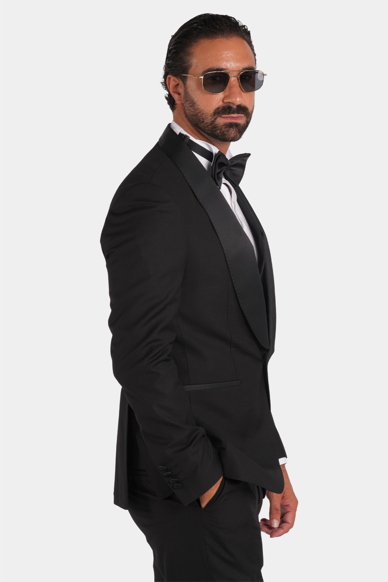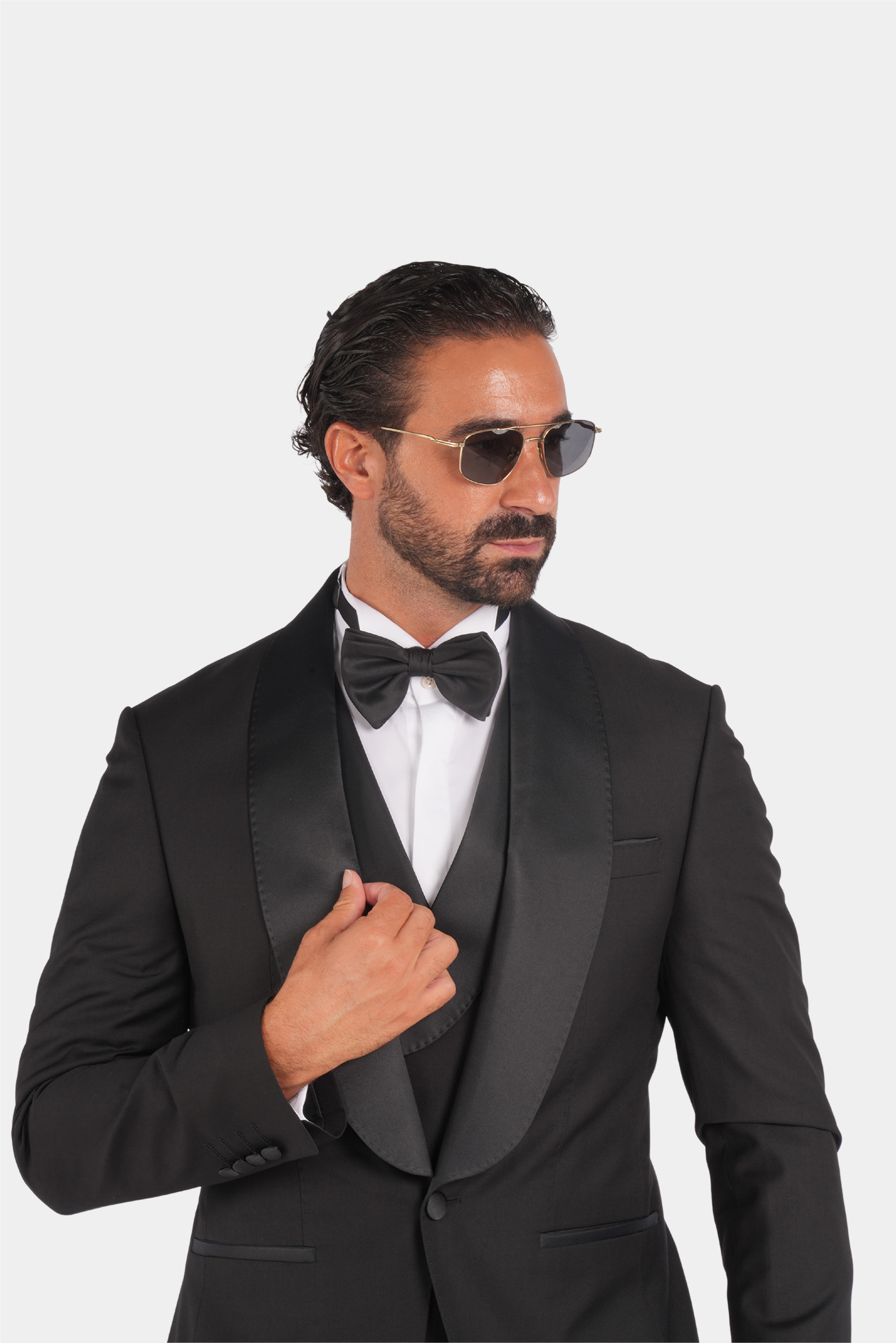 Dieser formelle und stilvolle schwarze Smokinganzug mit modernem und attraktivem Design ist eine ideale Wahl für formelle Anlässe wie Hochzeiten, Partys und besondere Events. Das Satin-Schalkragen-Revers in Kombination mit hochwertigem Stoff vermittelt eine Kombination aus Eleganz und Schönheit.