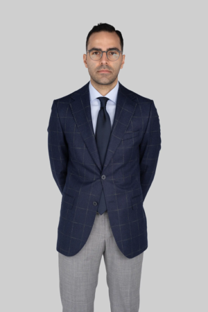 Marineblauer Einreiher-Sakko mit Karo-Muster aus Wolle