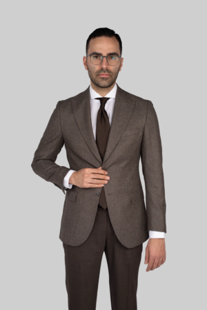 Brauner Einreiher-Sakko aus Wolle mit schwarzem Mikromuster