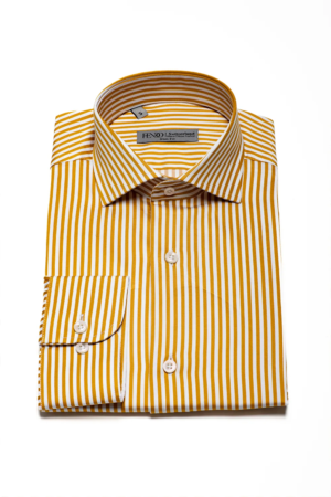 goldenes Slim Fit Baumwollhemd mit weißen Streifen