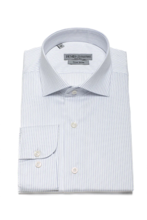 Weißes Slim Fit Baumwollhemd mit hellblauen Streifen