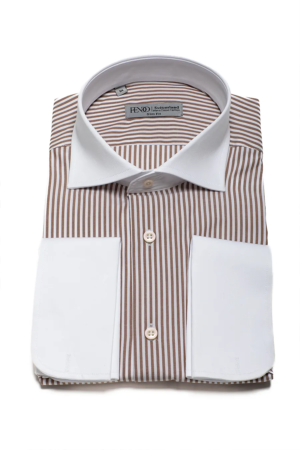 Braunes Slim Fit Hemd aus Baumwolle mit weißen Streifen