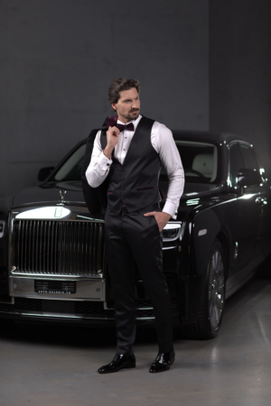 Smoking Herren Schwarz – Doppelreiher mit Strukturstoff & Satin-Revers