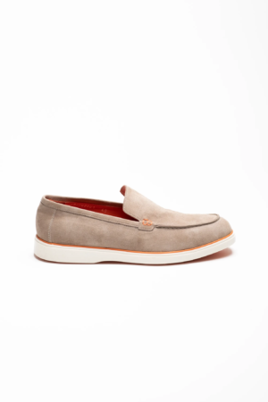 Weicher beigefarbener Wildleder-Loafer-Schuh