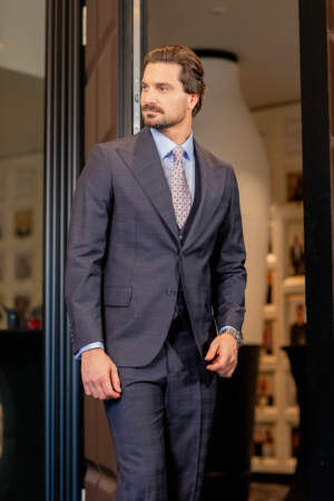 Dunkelblau karierter einreihiger Modern-Fit-Anzug
