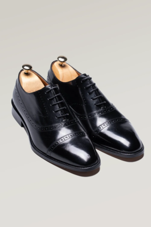 Schwarzer Büffelleder Brogue Oxford-Schuh