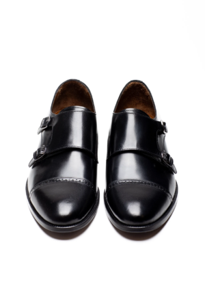 Schwarzer Lederschuh mit doppeltem Monk Strap