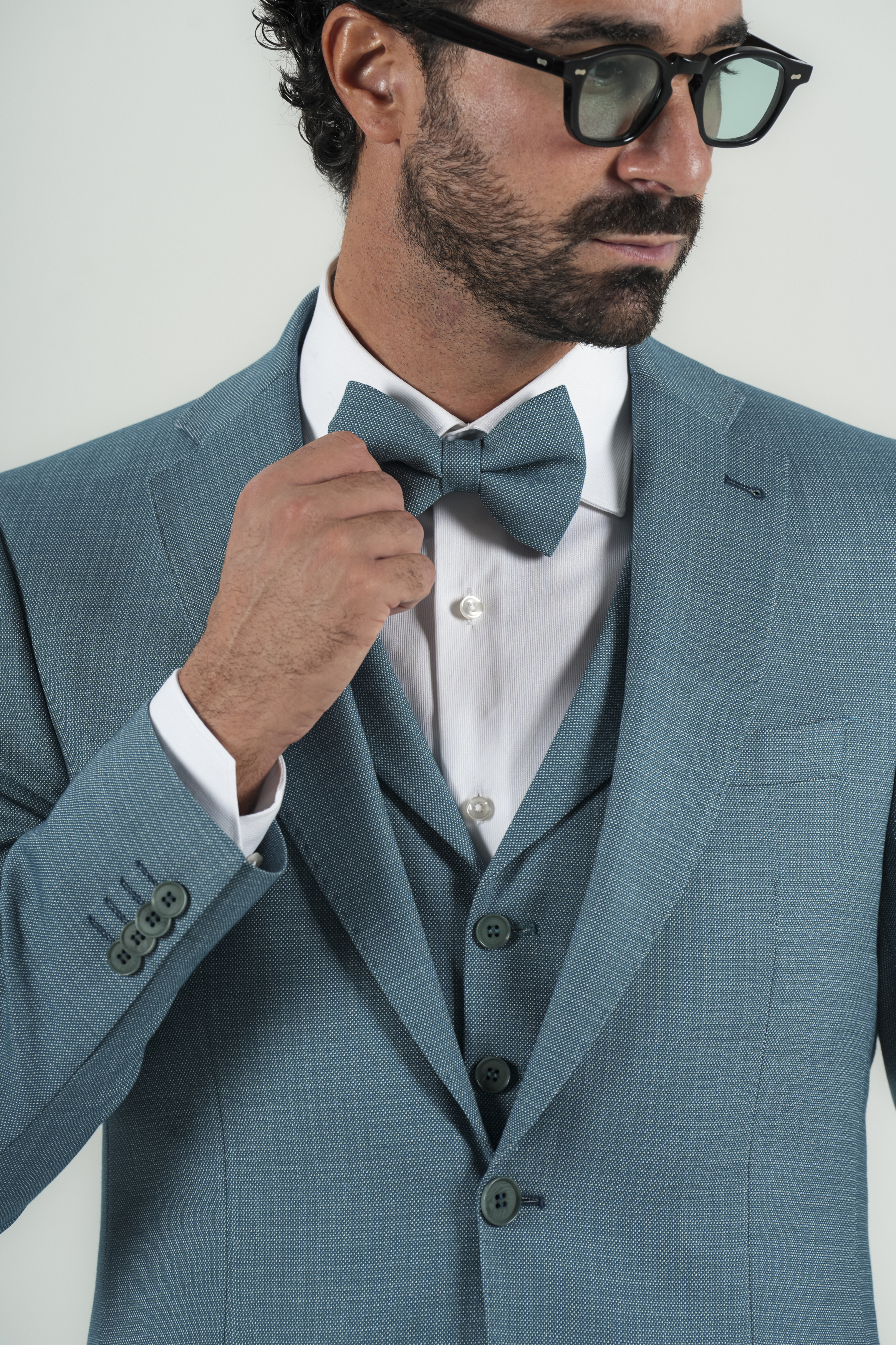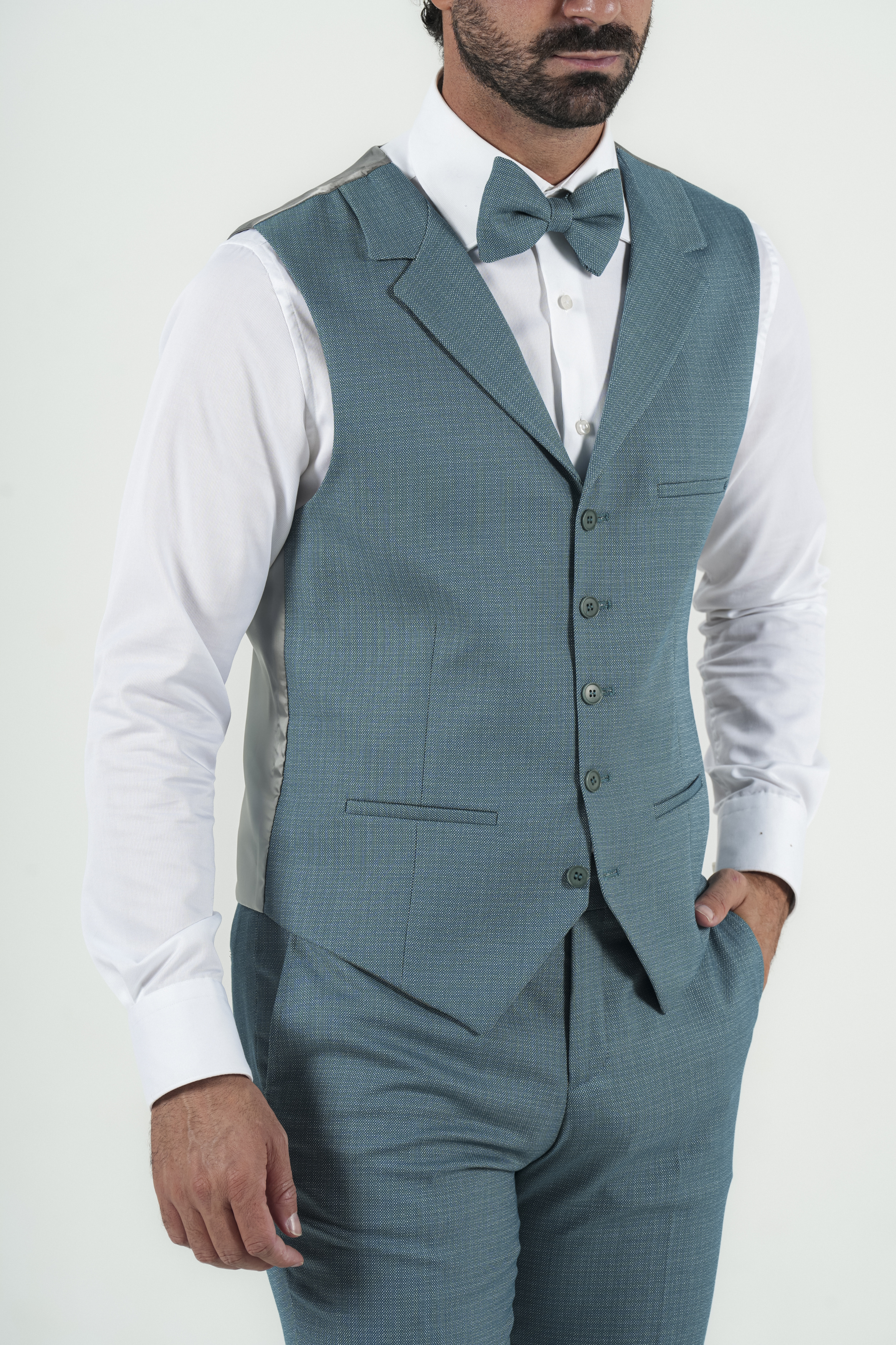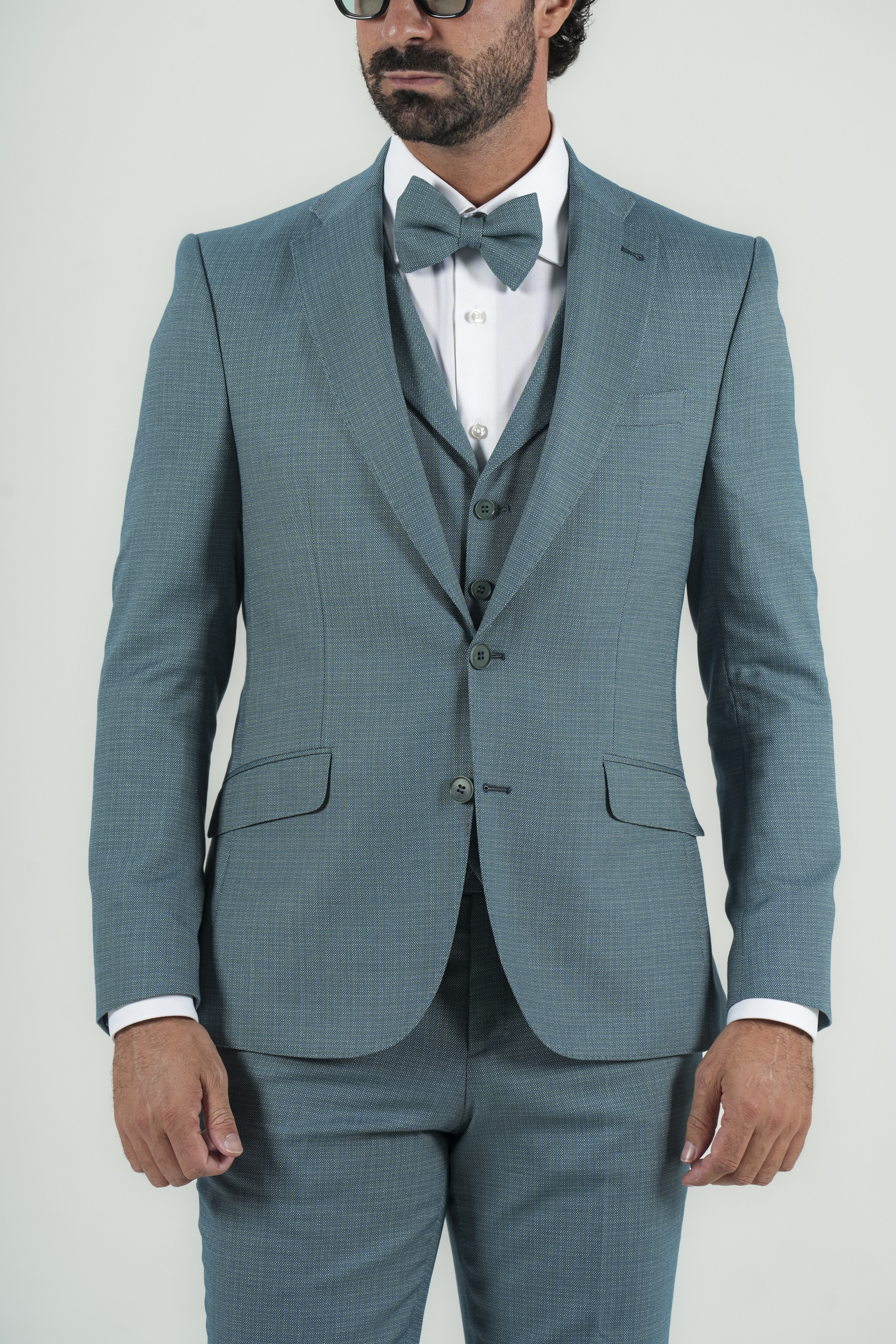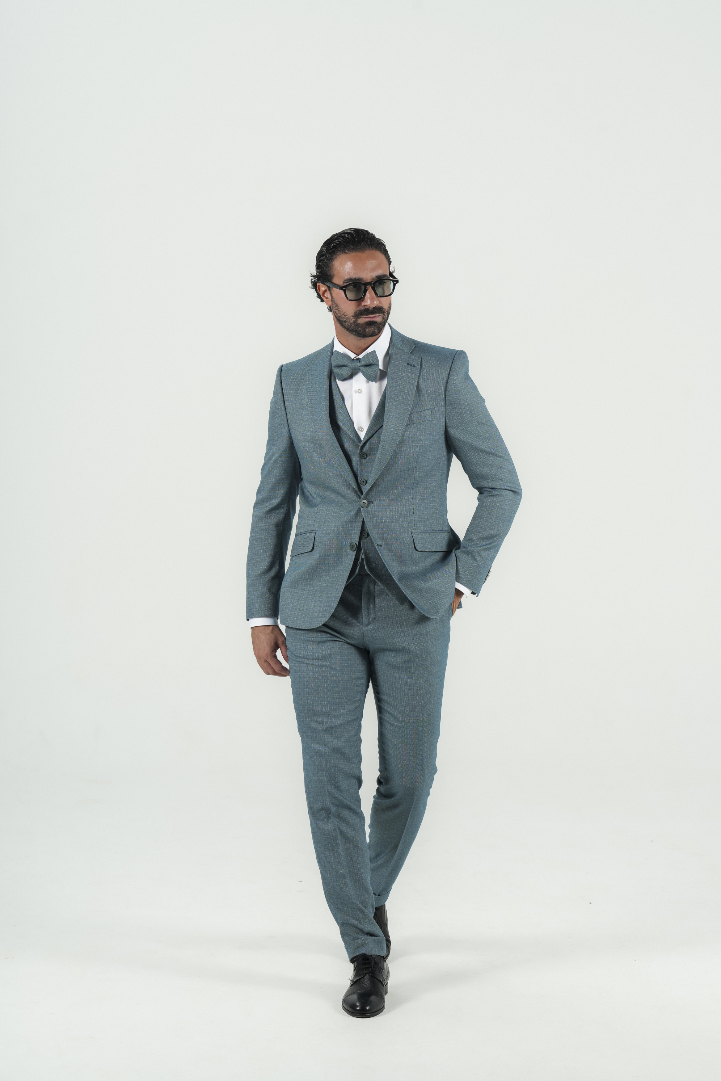 Dieses Produkt besteht aus drei Teilen und hat eine ganz besondere und schöne Farbe. Dieser Einreiher ist in der Farbe Türkis und hat eine schlanke Passform, und sein Design ist italienisch. Dieses Produkt gehört zu den Anzügen, die nicht nur schön, sondern auch von hoher Qualität sind und eine attraktive Wahl für Sie sein können.