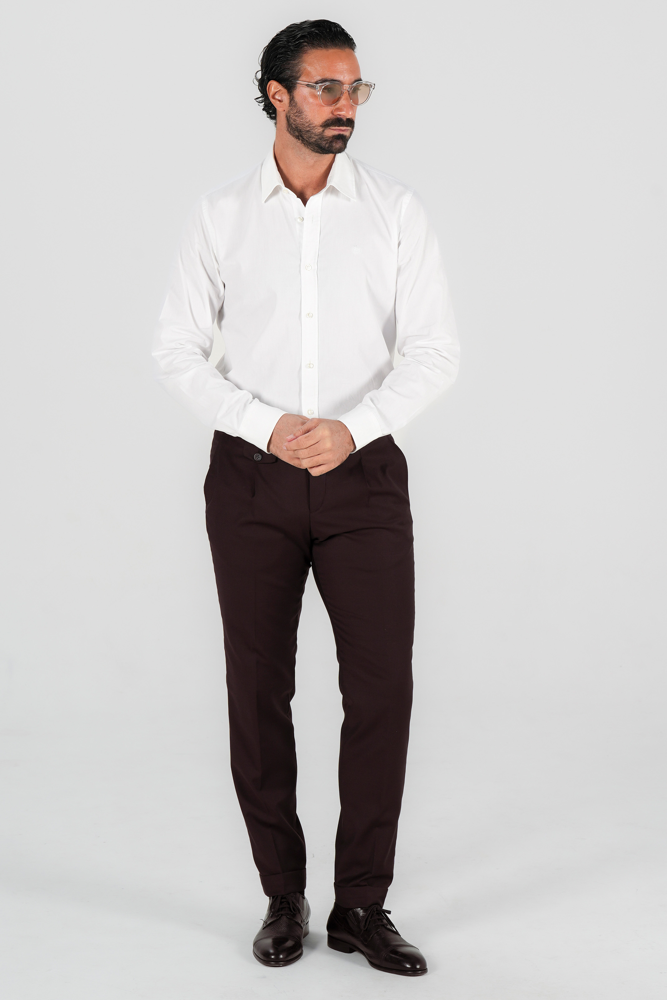 Weinrote Hose aus italienischer Wolle Tailored Fit