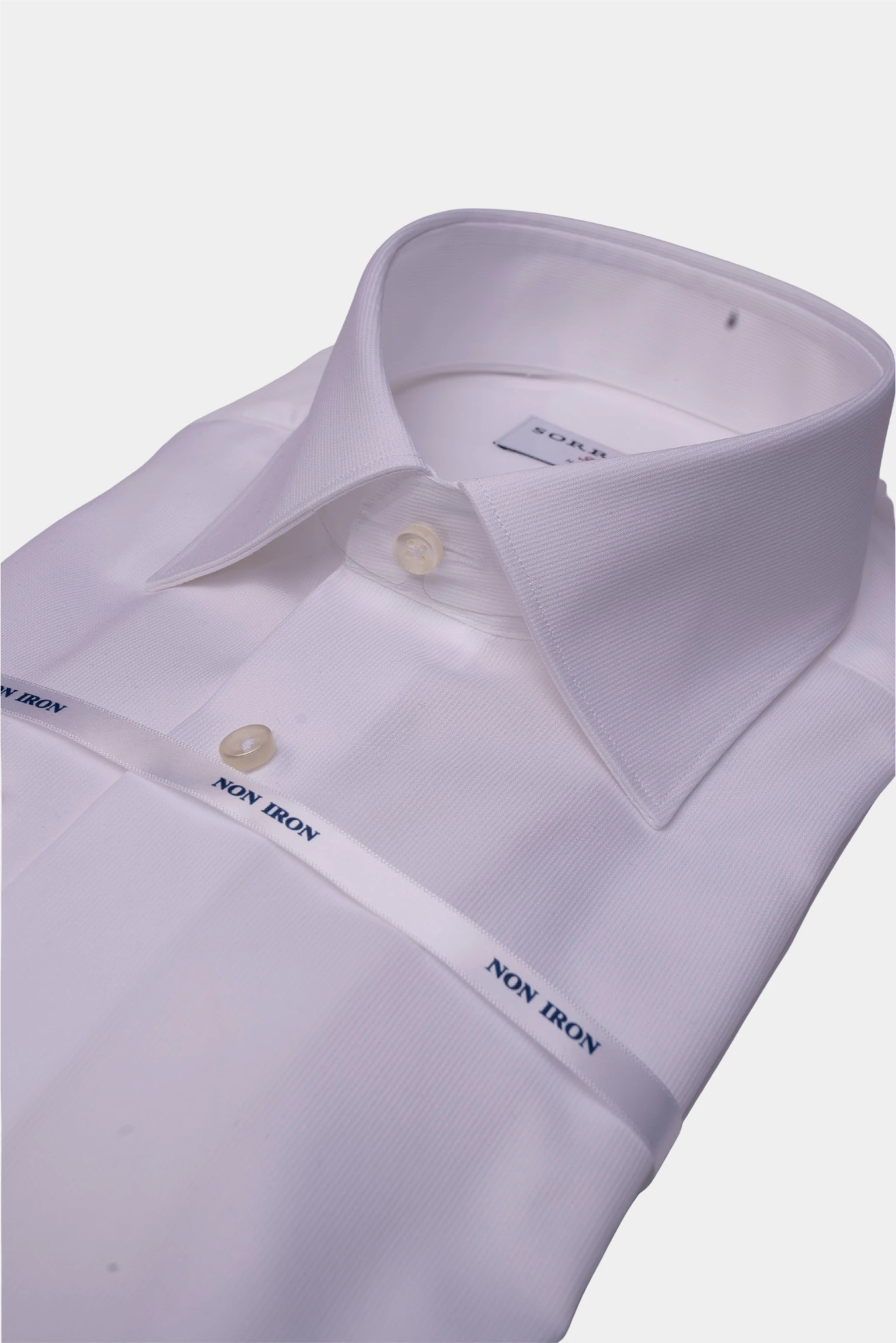 Mit klassischem Smokingkragen und doppelten Manschetten für Manschettenknoepfe praesentiert dieses Slim-Fit-Hemd eine klare, moderne Silhouette – perfekt für Smoking, Dinnerjacke oder jedes Black-Tie-Event.