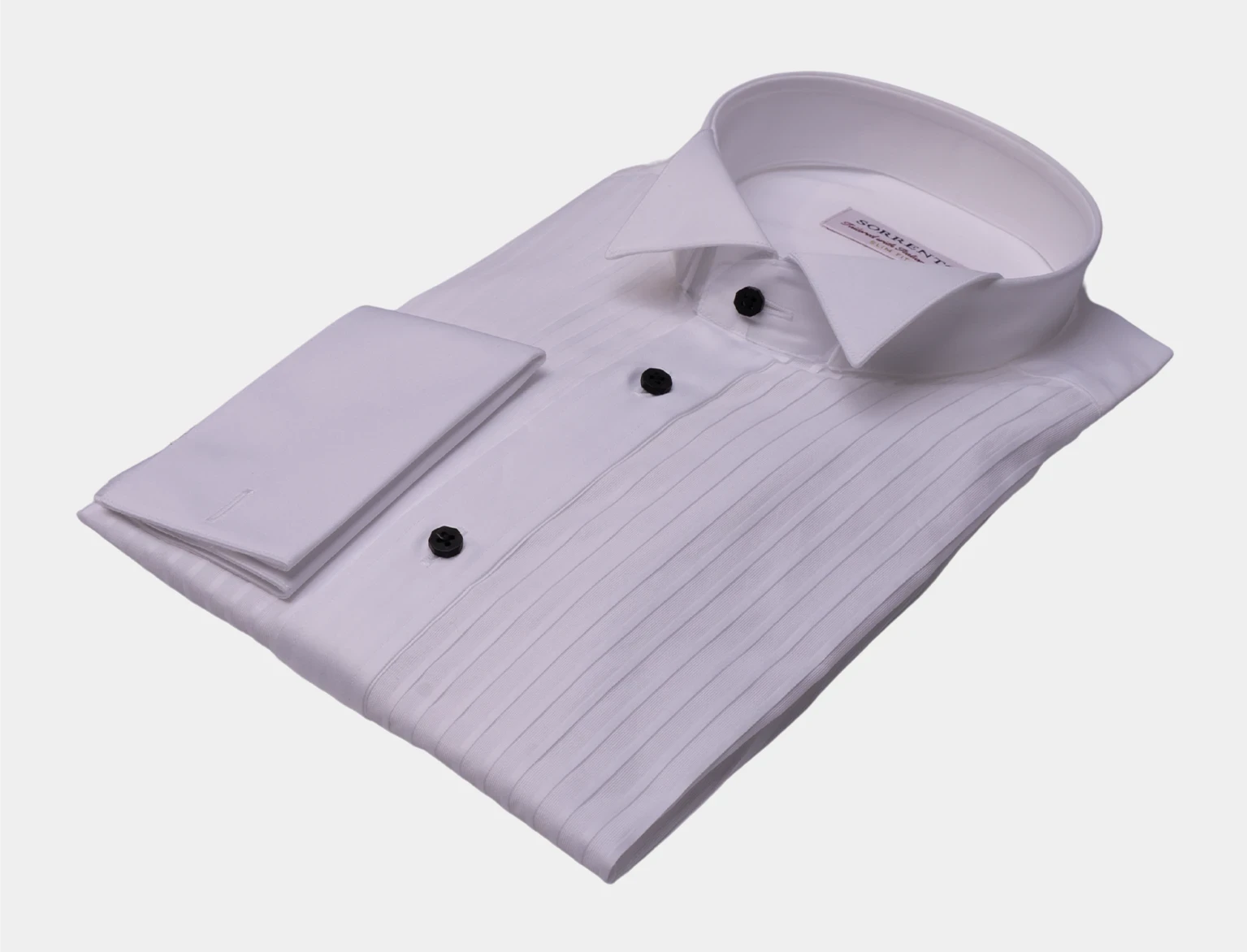 Ein edles und elegantes Smokinghemd aus 100 % hochwertiger Baumwolle, entworfen für formelle und anspruchsvolle Anlaesse.